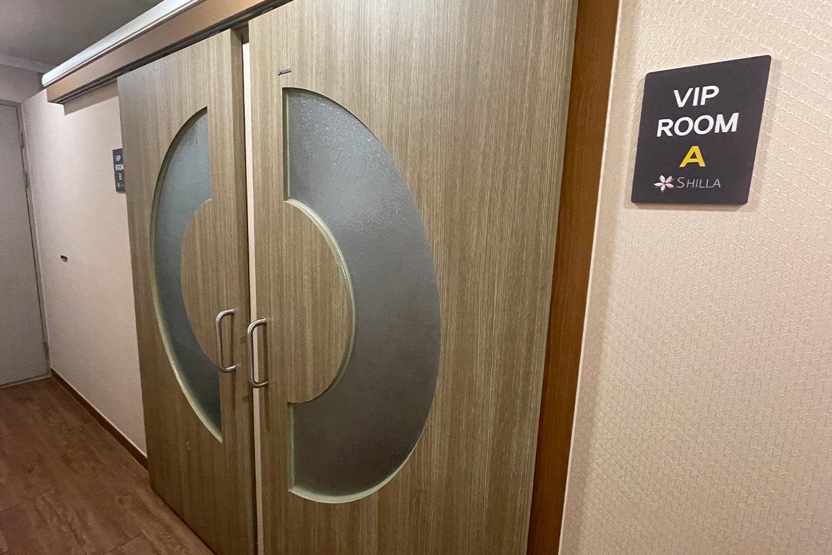 La salle VIP est divisée en deux pièces, chacune pour deux personnes. Comme ce sont toutes les deux des chambres doubles, les couples viennent fréquemment pour recevoir des massages. Les deux portes sont symétriques, et je me trouvais constamment à les regarder en raison du confort inexplicable qu'elles procurent.