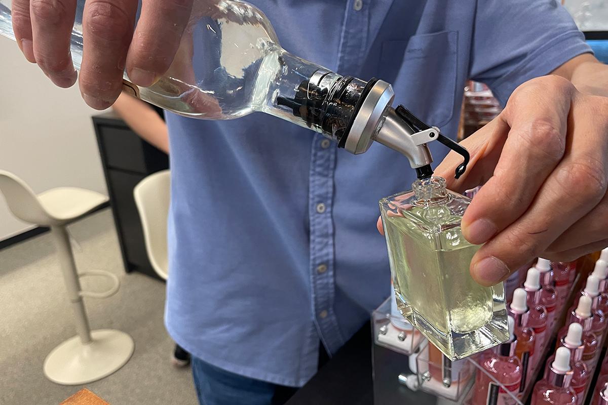 Une fois que vous avez choisi vos parfums, veuillez noter les noms des fragrances sur le tableau de fabrication de parfum.Ensuite, le coordinateur de parfums sélectionnera quelques fragrances uniques pour vous. Ces fragrances seront versées, une goutte à la fois, dans un récipient de test. Le récipient sera ensuite mélangé pour créer un premier échantillon pour vous.