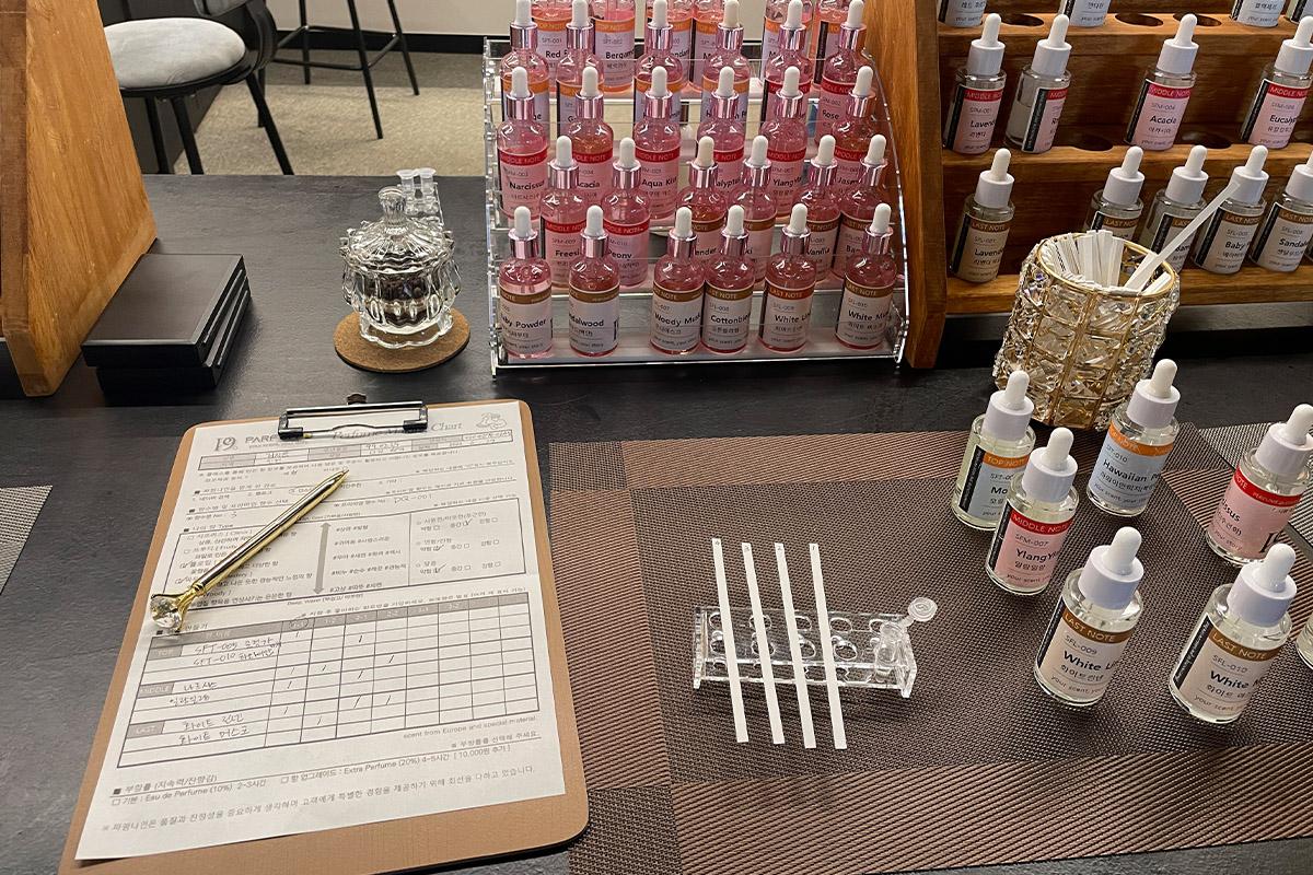 Aujourd'hui, nous avons visité Parfum 9, un studio de parfum situé à Hongdae. Parfum 9 combine parfum, qui signifie fragrance et parfum, avec le chiffre 9, le plus grand chiffre unique en numérologie représentant l'achèvement de la fragrance et l'excellence de la qualité.