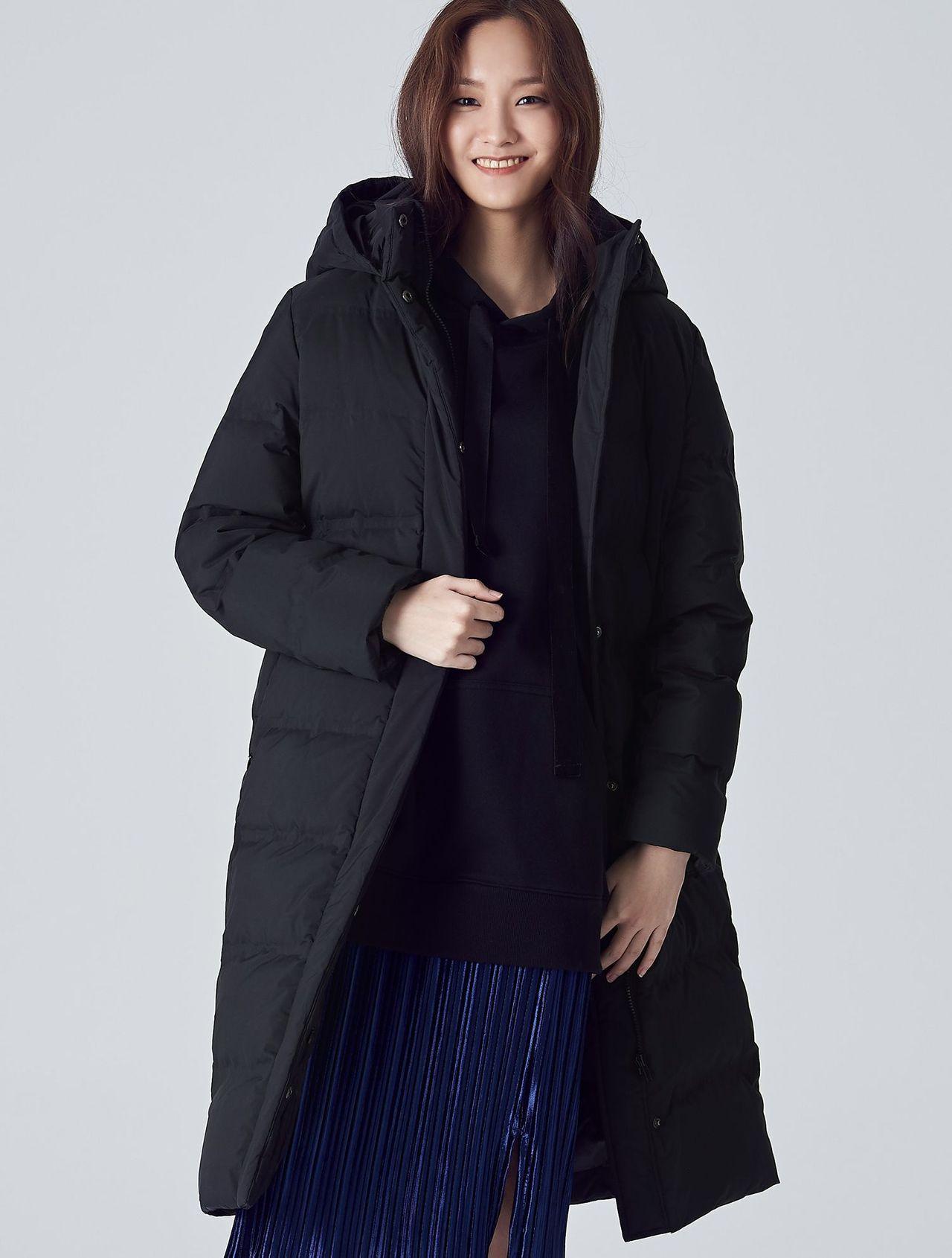 The photo above is the Women's puffer jacket. (Modèle: 후드 롱 다운패딩)