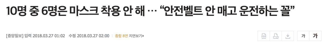 Ces jours-ci, il y a plus de personnes qui portent des masques qu'auparavant à cause de la pollution fine. Cependant, cela ne concerne que les jeunes. Ce phénomène ne découle pas du souci des autres, mais de 'se protéger soi-même'. En réalité, la pollution fine fait mal à la gorge au point de vous donner l'impression que votre vie se raccourcit. Pourtant, il y a tellement de gens qui ne portent pas de masques parce que c'est inconfortable.