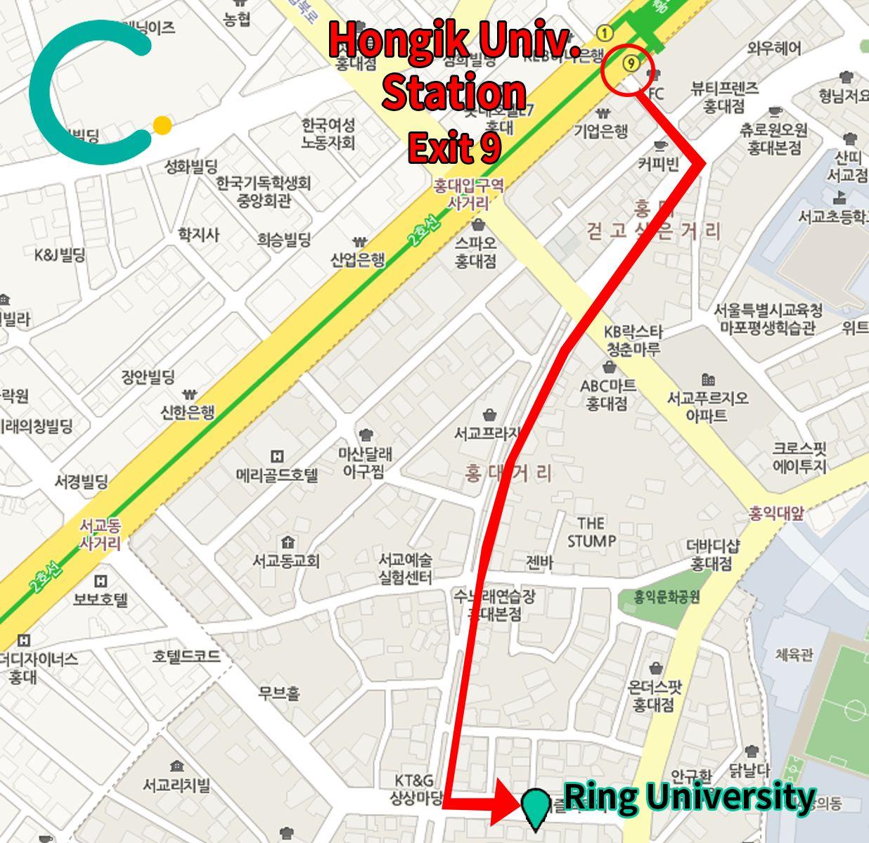 Sortie Hongik University Station Sortie 9, trouvez KT&G Sangsangmadang et tournez à gauche. Continuez tout droit un peu et vous trouverez l'endroit. |