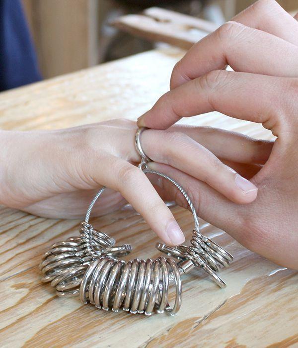 Ils mesureront votre doigt avec cet équipement de mesure et couperont l'anneau à la taille exacte.