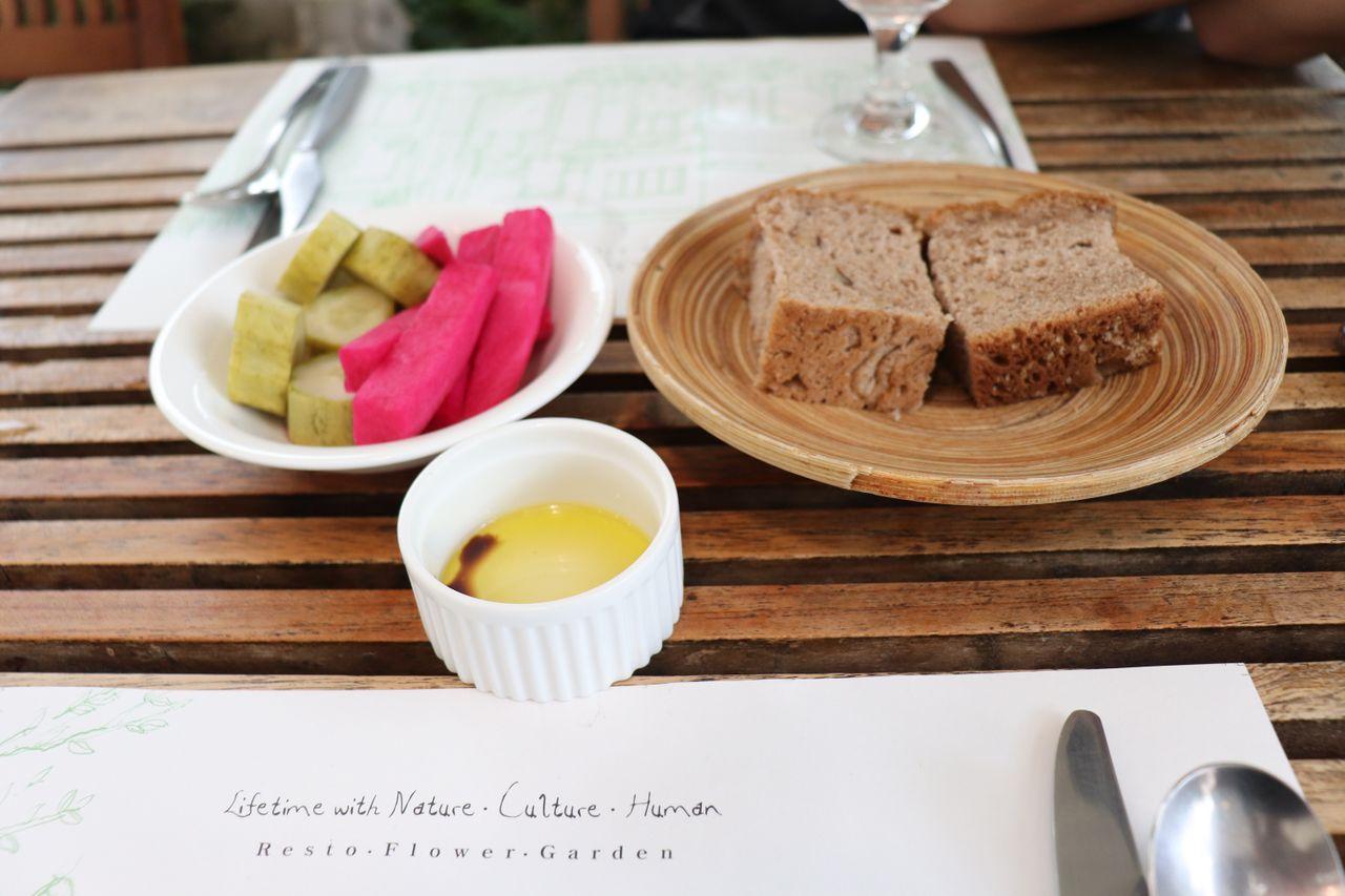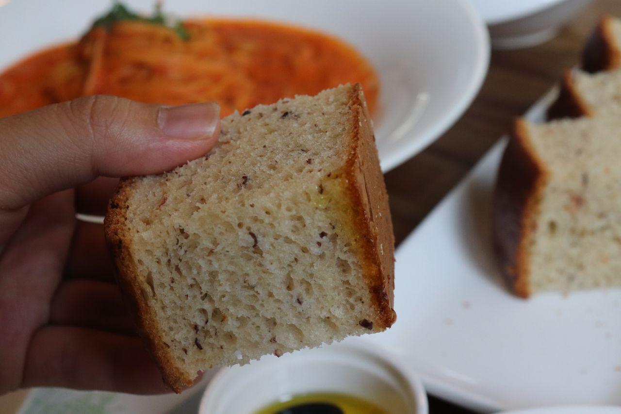 Le pain d'apéritif est fraîchement cuit au restaurant chaque jour. C'est délicieux à tremper dans la sauce balsamique.