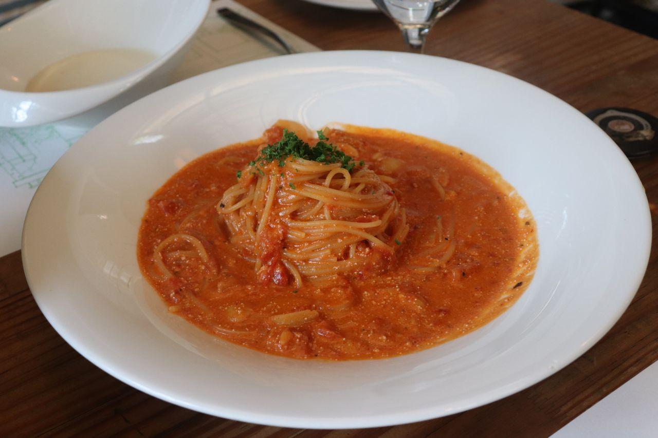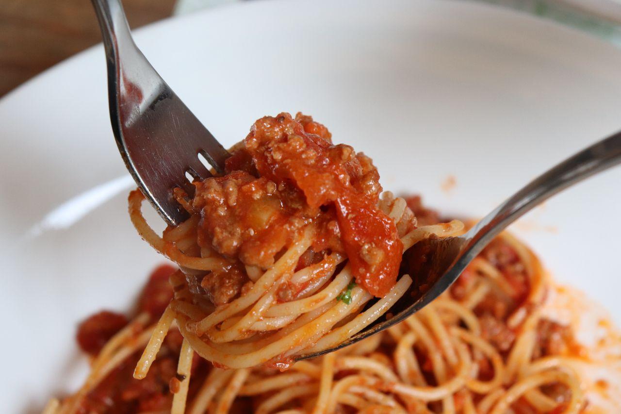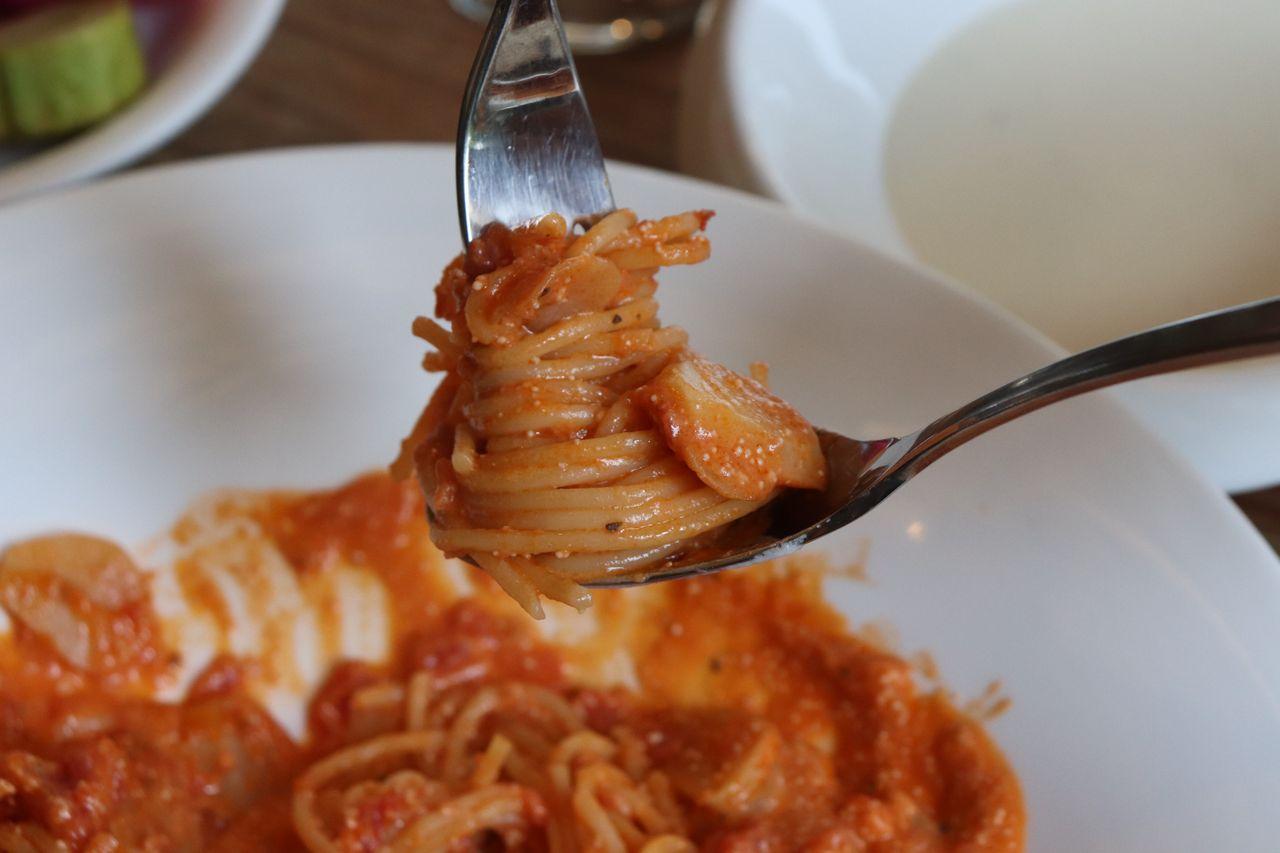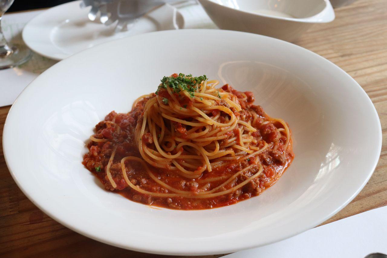 La sauce tomate des pâtes bolognaises est sautée avec des viandes. Les pâtes sont si bonnes que les principales commandes du menu déjeuner sont des pâtes.