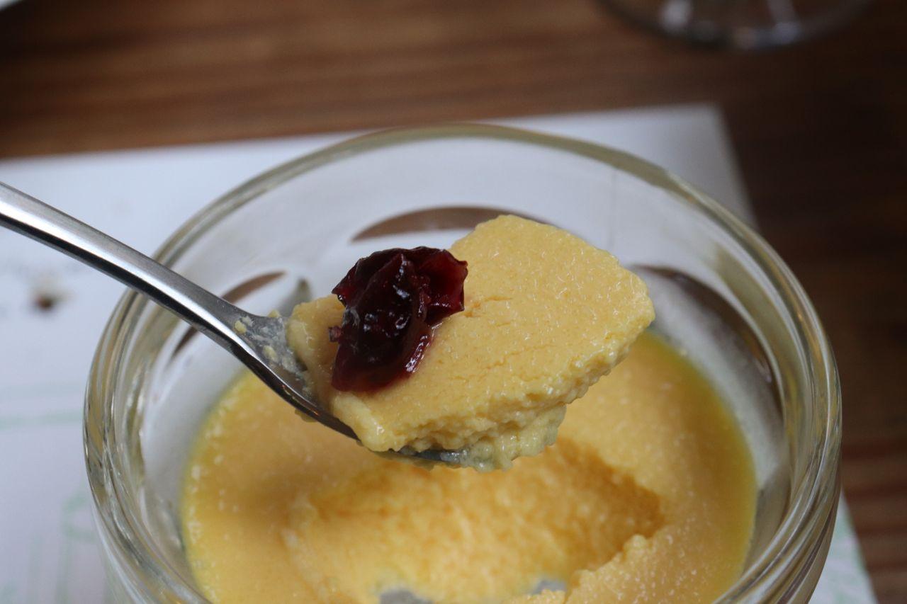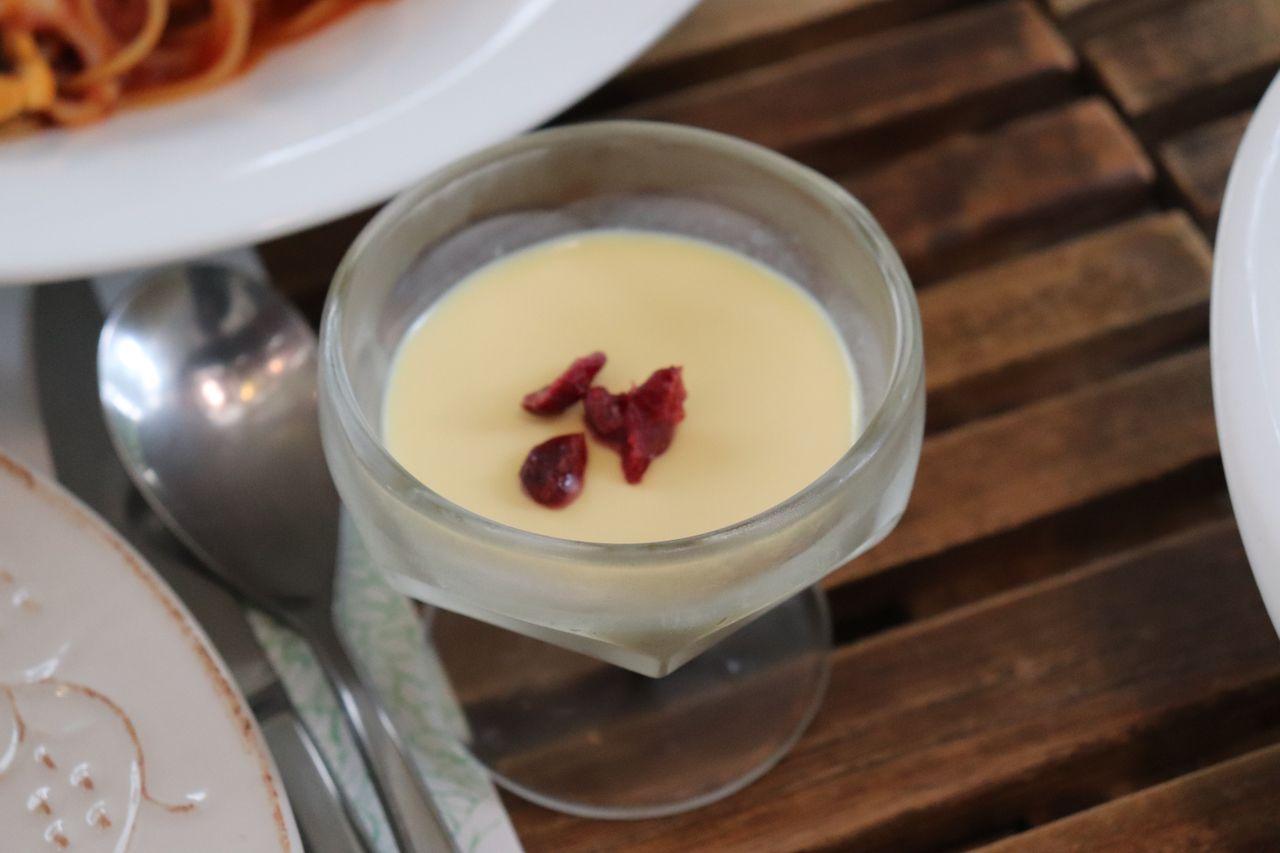 Pudding à la mangue pour le dessert.