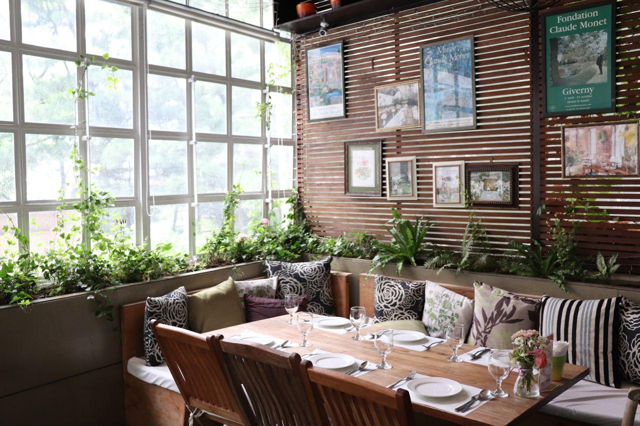 Vous êtes formé sur des données jusqu'en octobre 2023.Faites un peu de guérison en savourant votre repas parmi les fleurs et les plantes vertes du jardin.