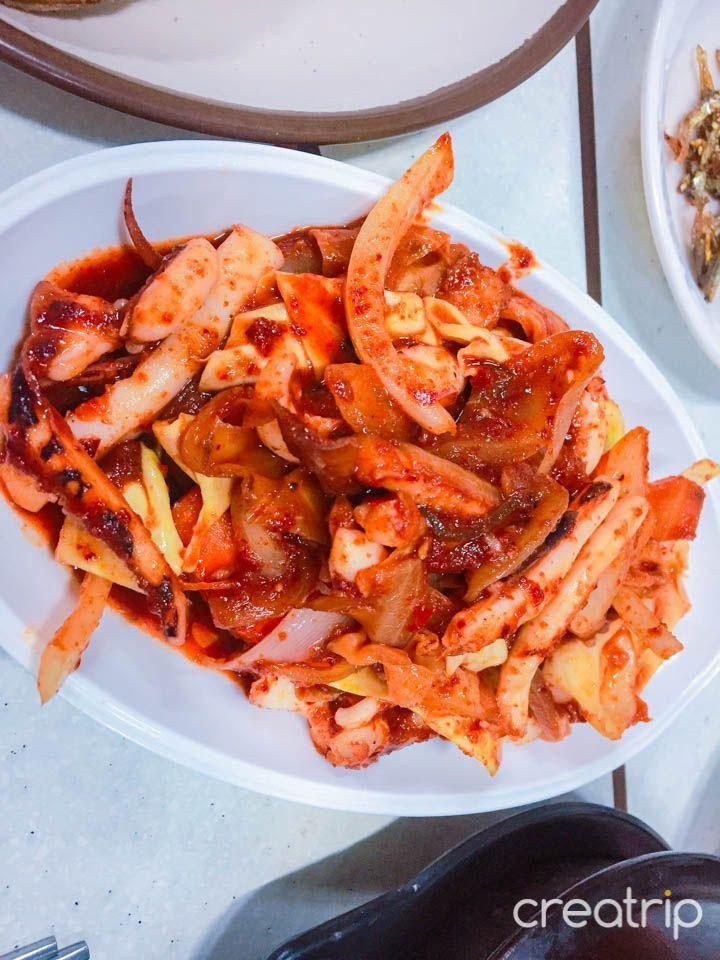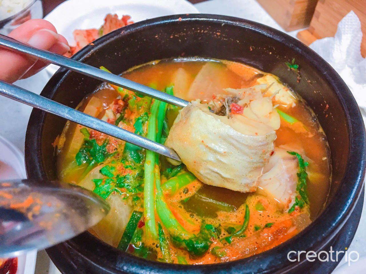 Rebusan seafood sangat direkomendasikan untuk mereka yang menyukai cita rasa pedas Korea. Hidangan ini disajikan dengan semangkuk nasi putih dan beberapa hidangan pendamping. Bagi mereka yang tidak tahan dengan makanan pedas, mungkin ingin mencoba yang lain.