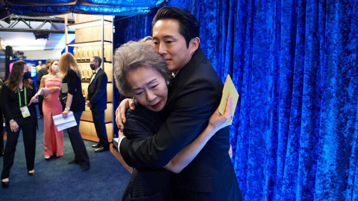 Steven Yeon dan Youn Yuh-jung setelah kemenangannya di Oscar (Sumber: Getty Images)