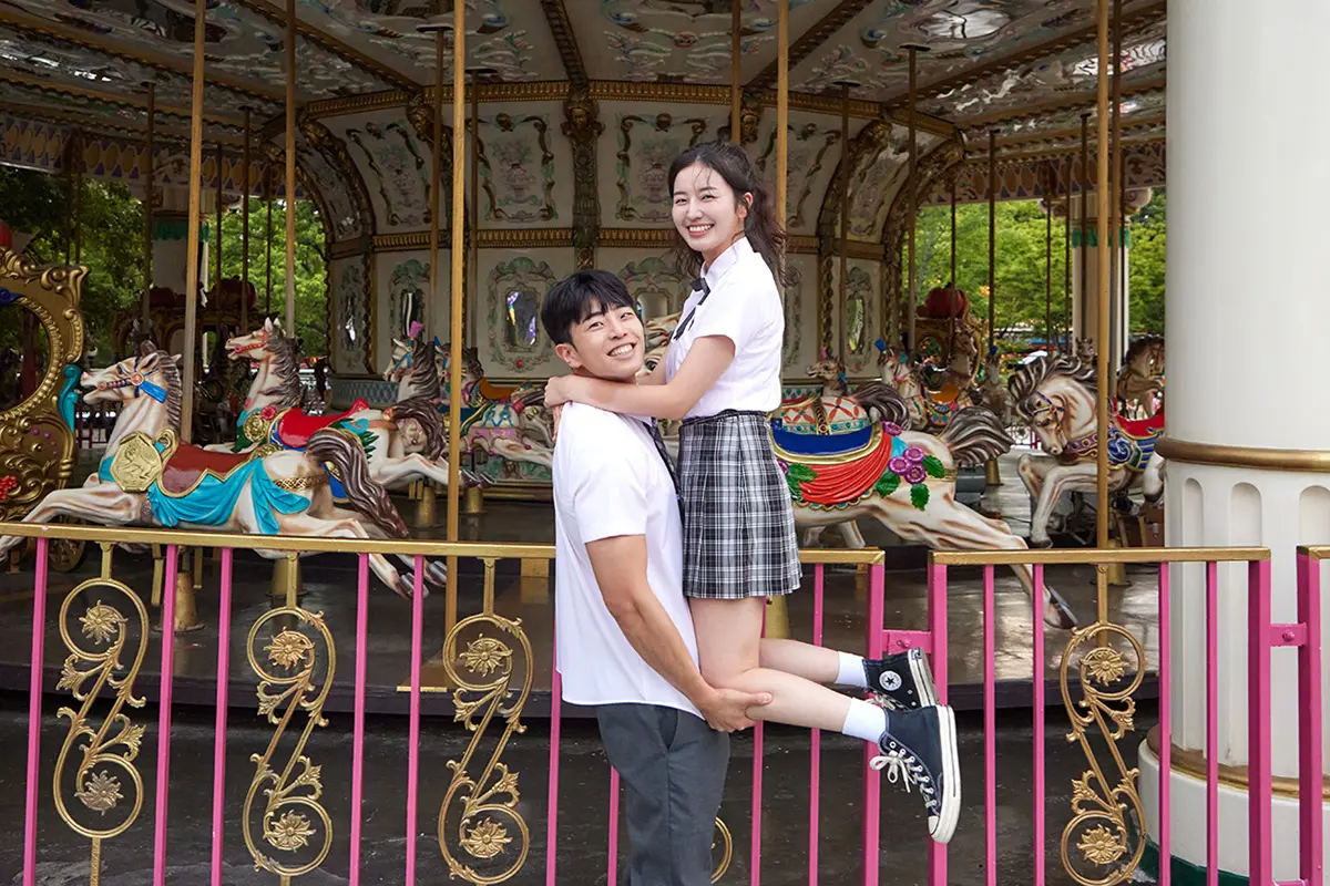 Menyewa seragam sekolah saat pergi ke taman hiburan adalah suatu keharusan di Korea!