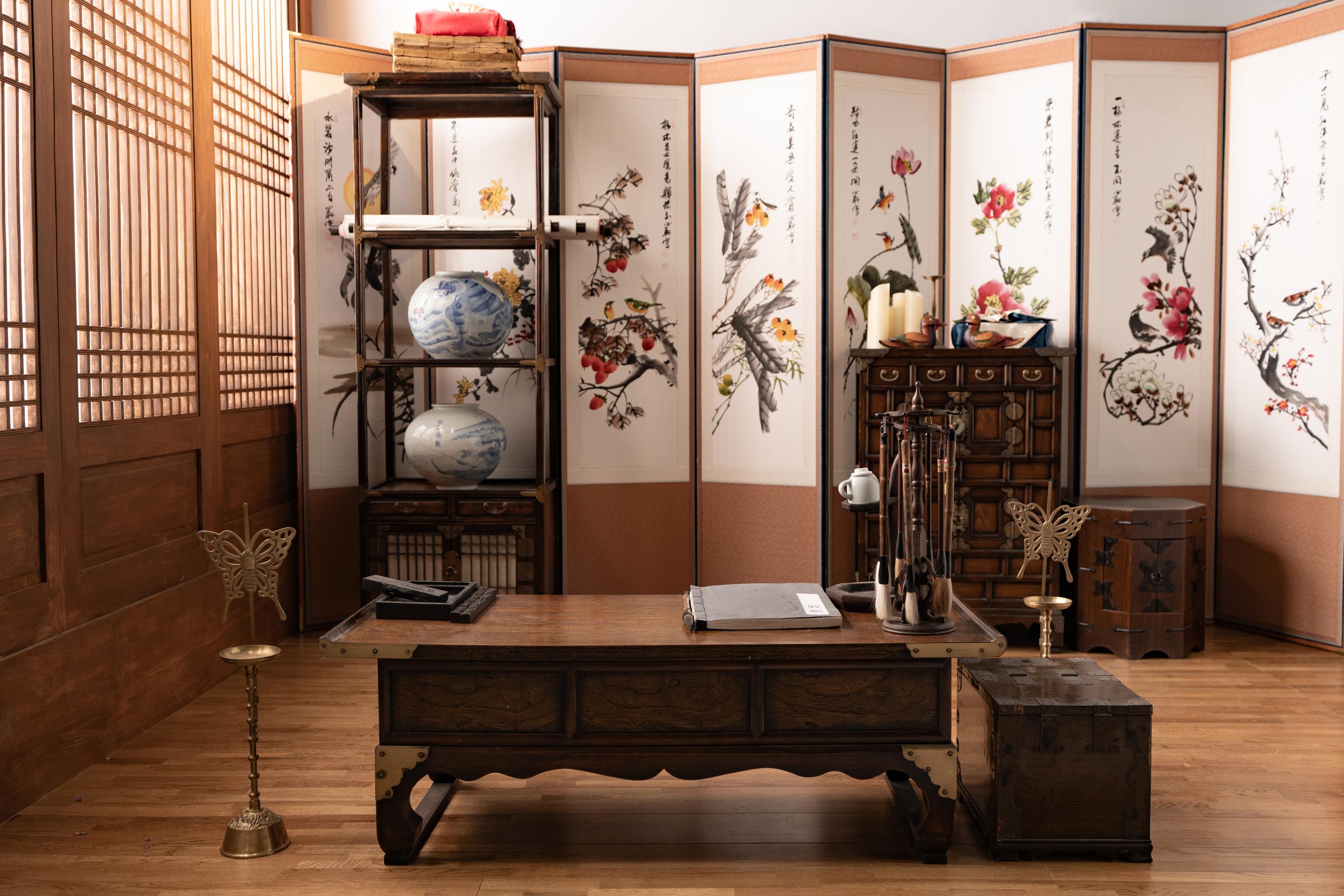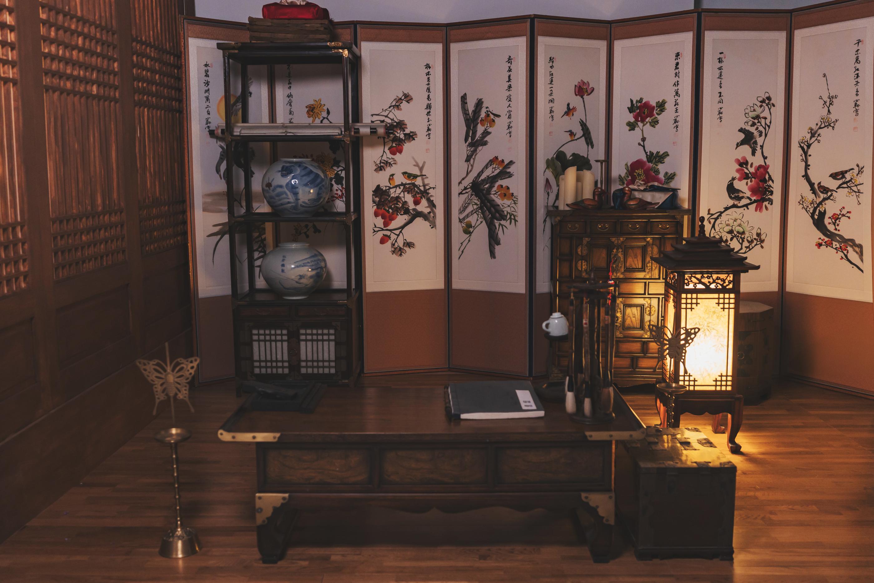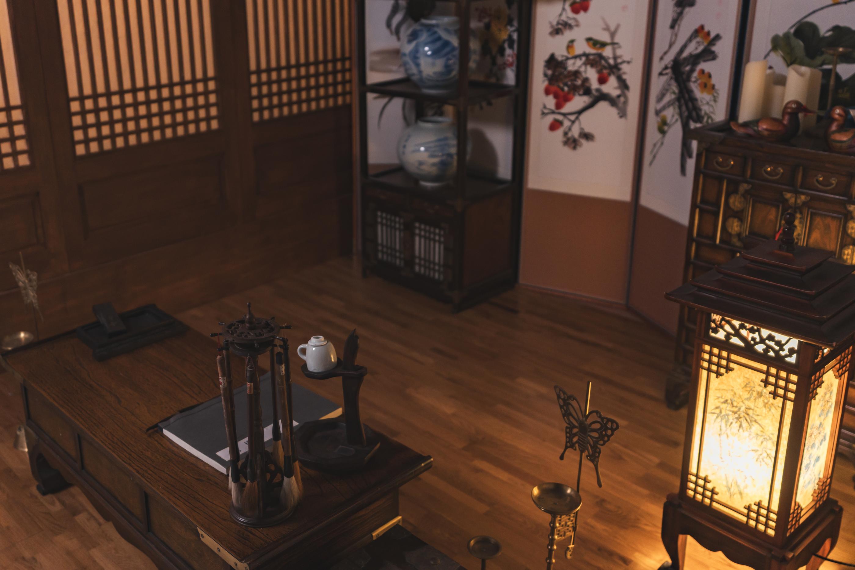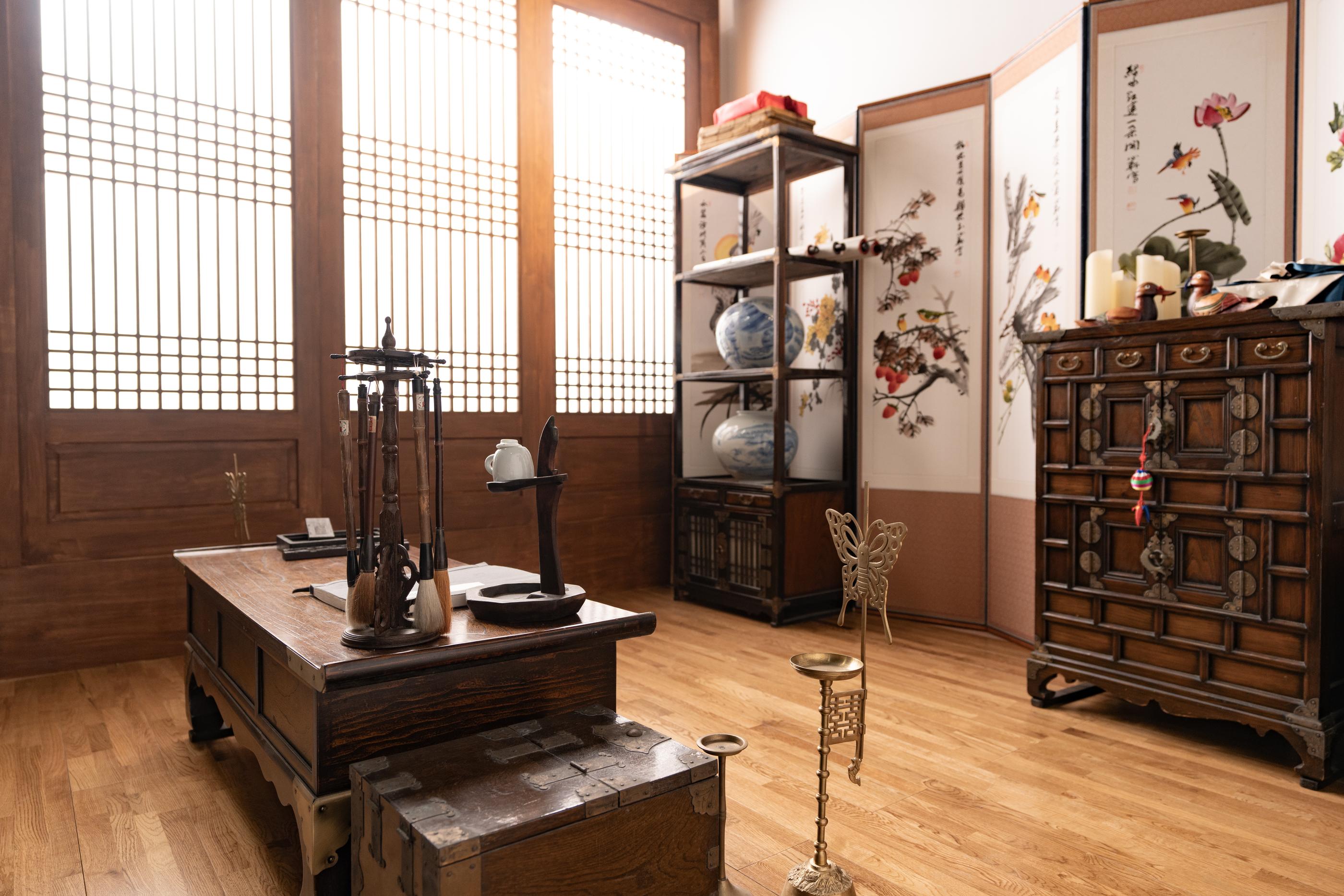Di meja rias ada berbagai hiasan rambut seperti daenggi dan binyeo yang cocok dipadukan dengan Hanbok, serta Norigae.