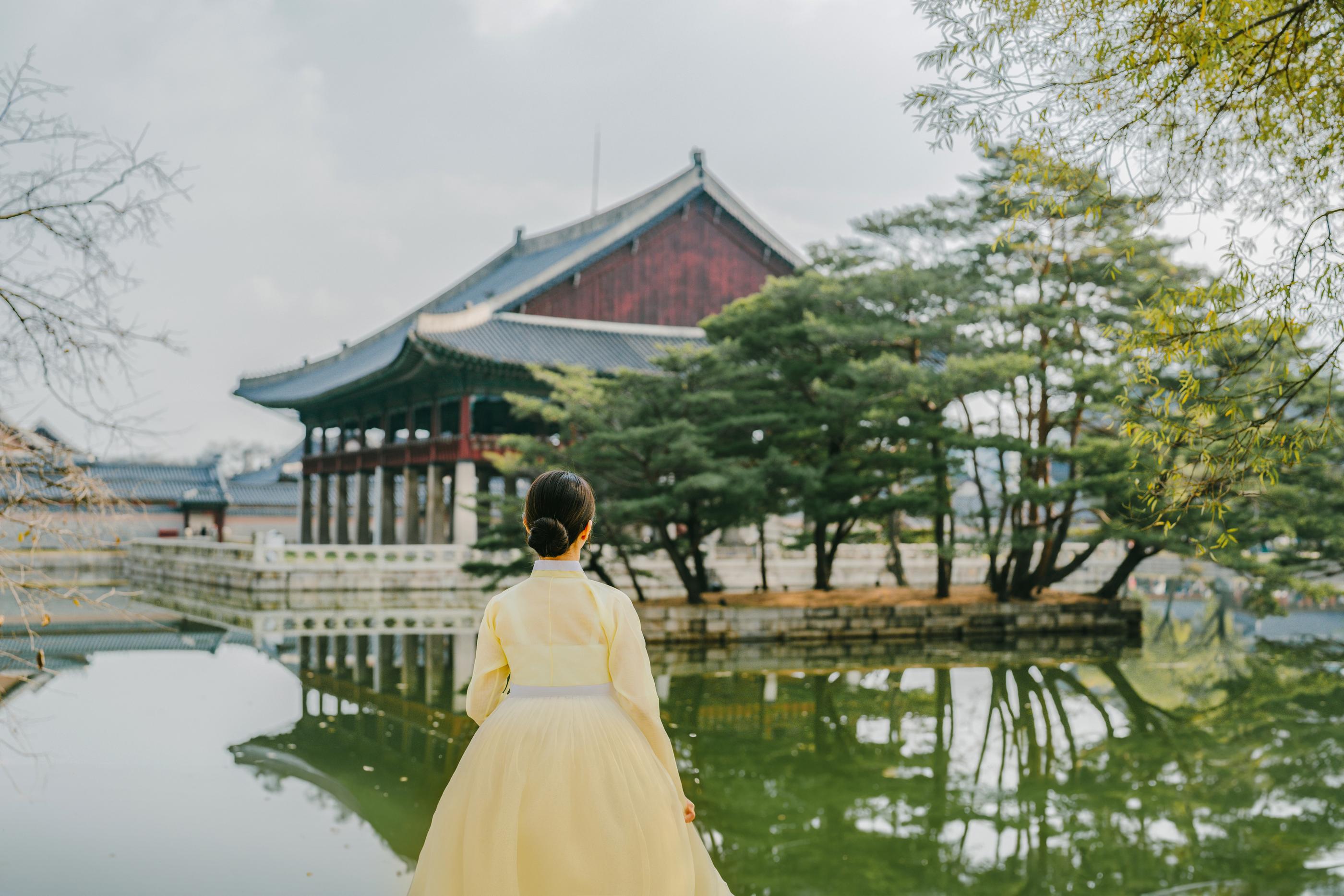 Gyeongbokgung adalah pengalaman wajib bagi pelancong yang ingin merasakan budaya Korea sepenuhnya, dengan memakai Hanbok dan berfoto.