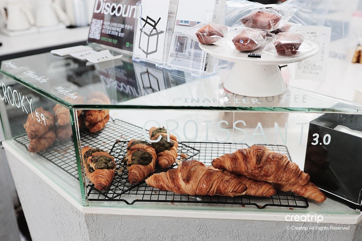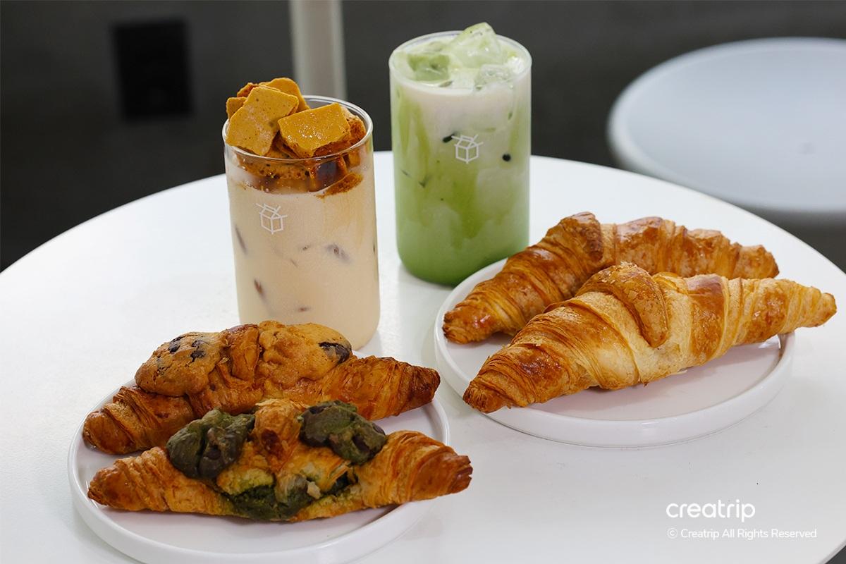 Di sebelah konter, ada croissant dan makanan penutup lezat yang dipajang yang menarik perhatian saya. Memadukan croissant renyah dengan minuman manis sepertinya akan menjadi pasangan yang sempurna!