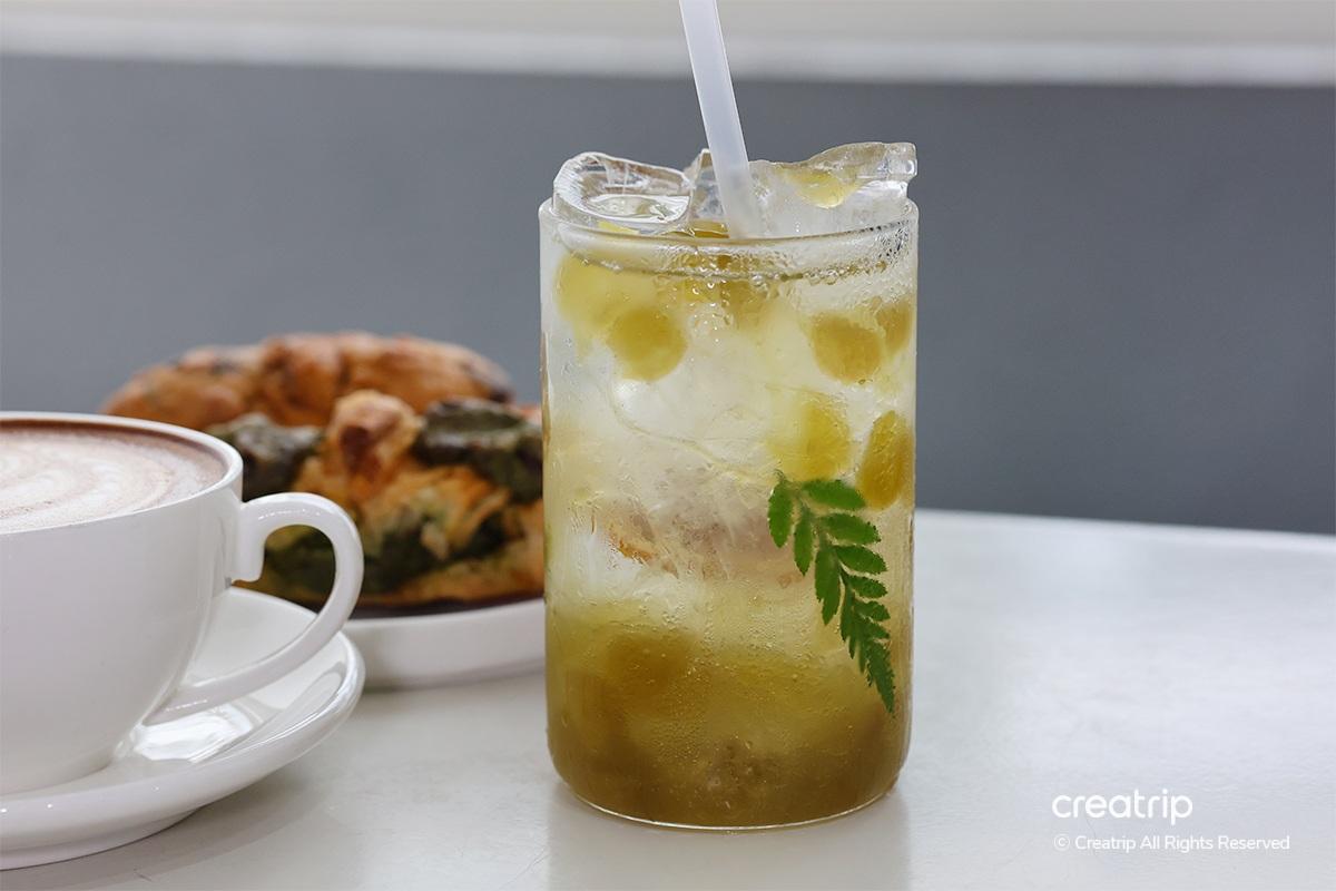 Pertama, 'Green Grape Ade' diisi dengan potongan anggur hijau di dalam ade. Sirup anggur hijau terasa kental, sehingga diletakkan di bagian bawah, jadi Anda harus mencampurnya dengan baik menggunakan sedotan dan meminumnya. 'Green Grape Ade' diisi dengan potongan blueberry, membuatnya menyenangkan untuk dikunyah, dan berkat rasanya yang menyegarkan, saya bisa menikmatinya dengan sejuk.