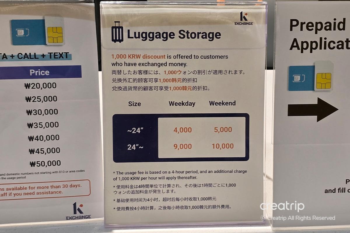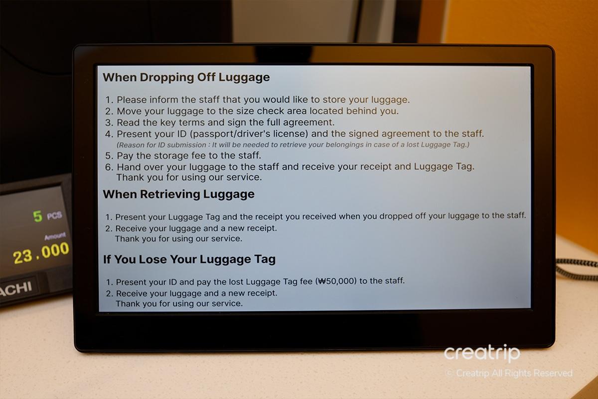 Manfaat penyimpanan bagasi gratis selama 4 jam hanya tersedia setelah menukarkan mata uang di cabang K Exchange Myeongdong.