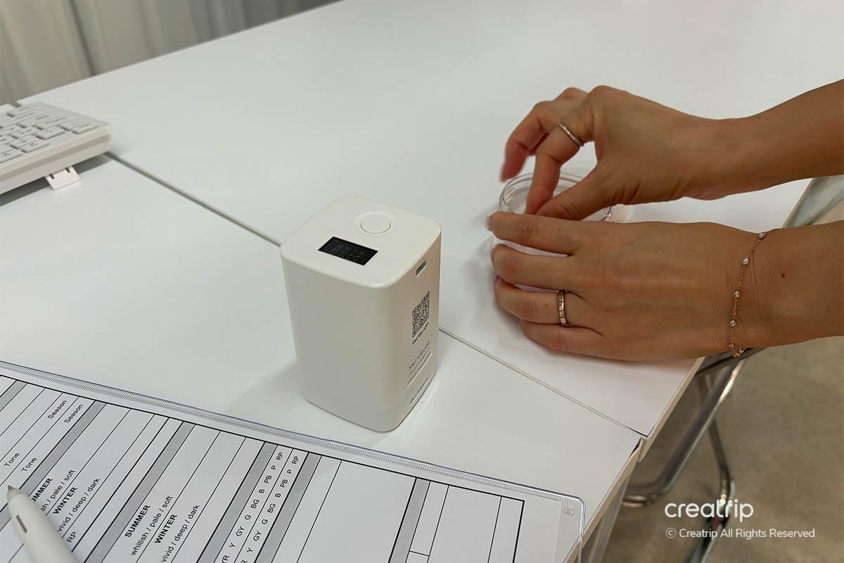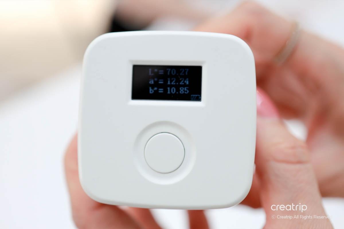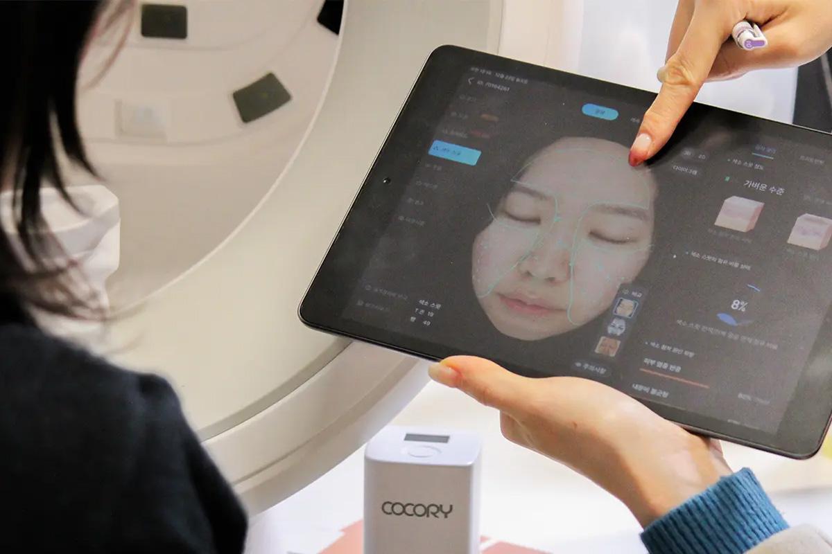 Selanjutnya, mereka melakukan pengukuran warna kulit dengan mesin yang dikembangkan oleh COCORY.
