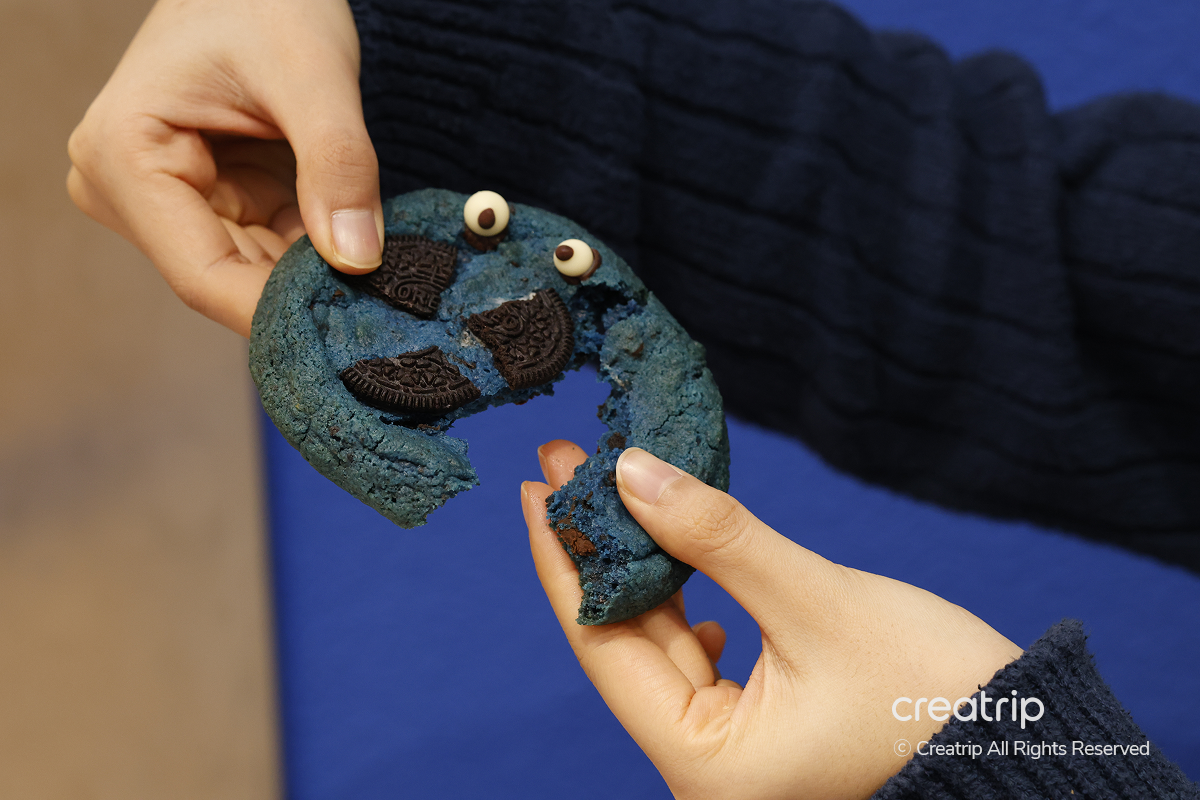 Setiap kue kering memiliki stiker berbentuk mata kecil, yang membuat detailnya terasa lucu.