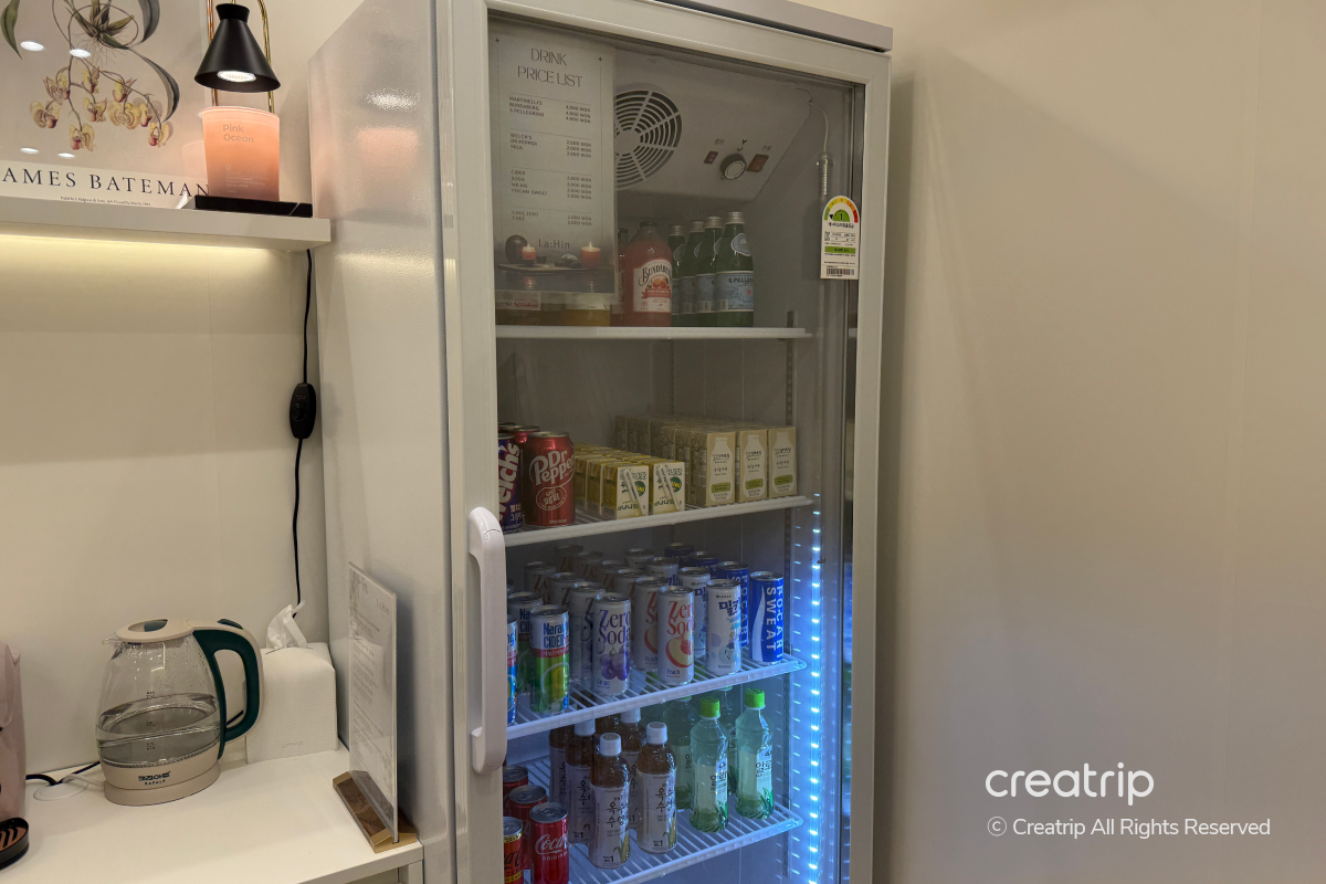 Selain itu, kulkas diisi dengan berbagai minuman, jadi Anda bisa memilih minuman tambahan, membayar, dan menikmatinya.