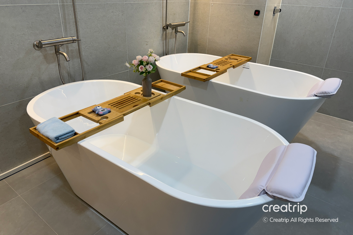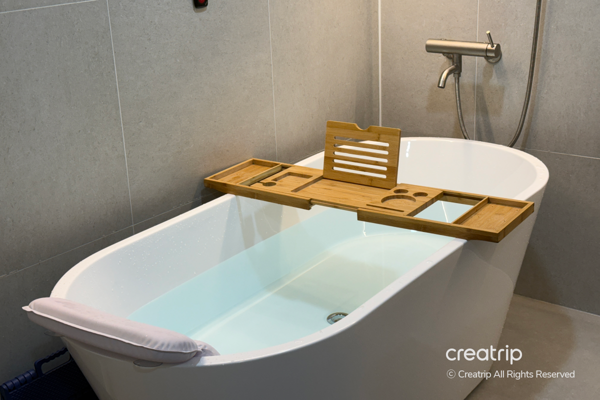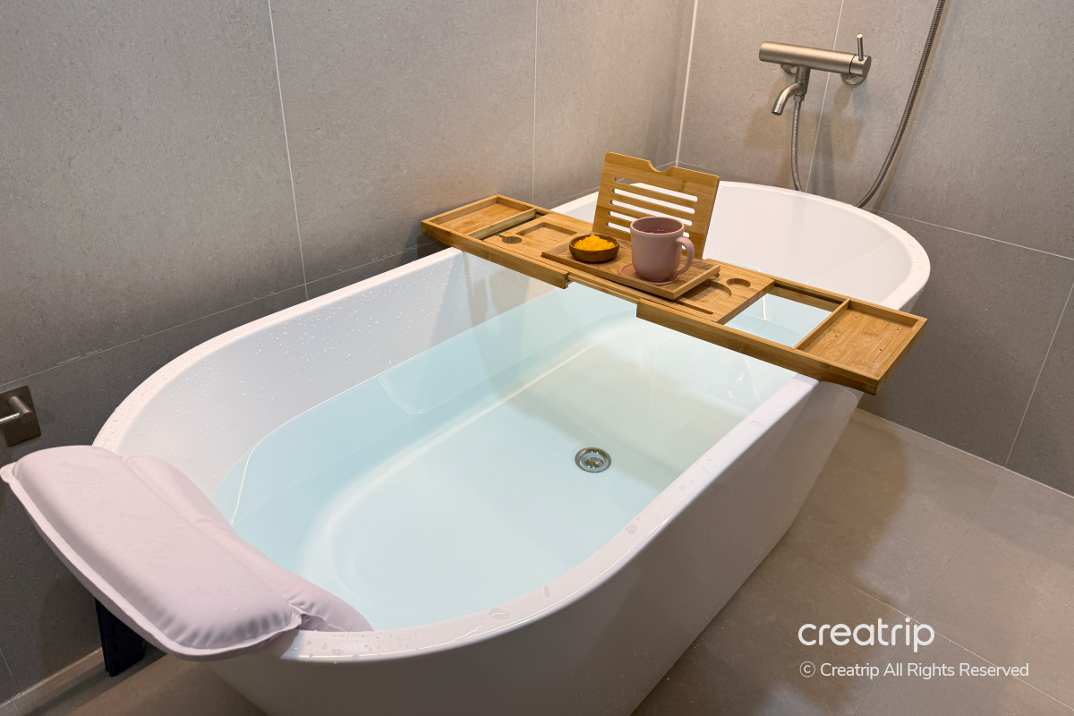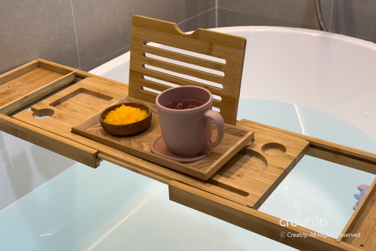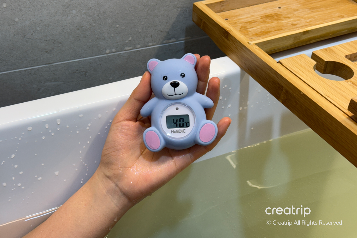 Mereka bahkan menaruh termometer di bathtub sehingga saya bisa menjaga suhu air tetap nyaman saat berendam!