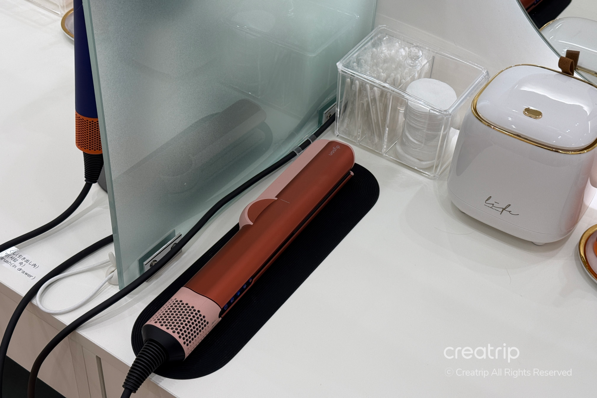 - Fasilitas seperti pengering rambut dan styler Dyson disediakan, dan tempat dipelihara bersih secara keseluruhan, sehingga lingkungan nyaman untuk digunakan.