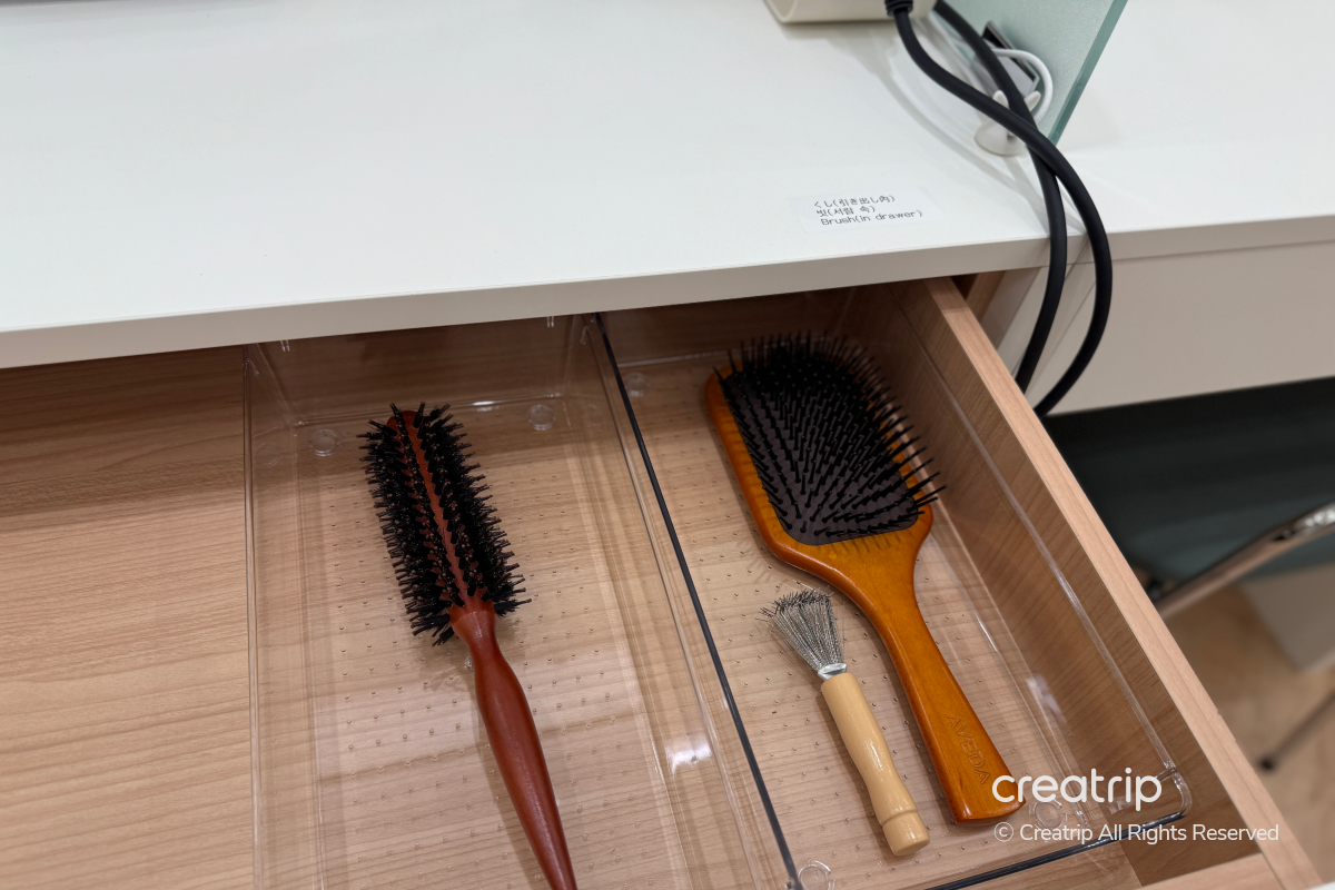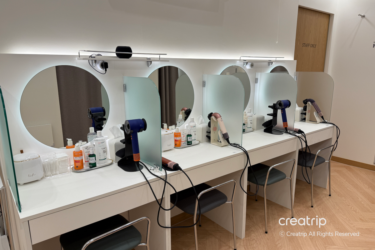 Seluruh ruang tersusun rapi, dan setiap tempat duduk memiliki cermin dan perlengkapan, jadi beberapa orang bisa menggunakannya bersamaan tanpa kerepotan.