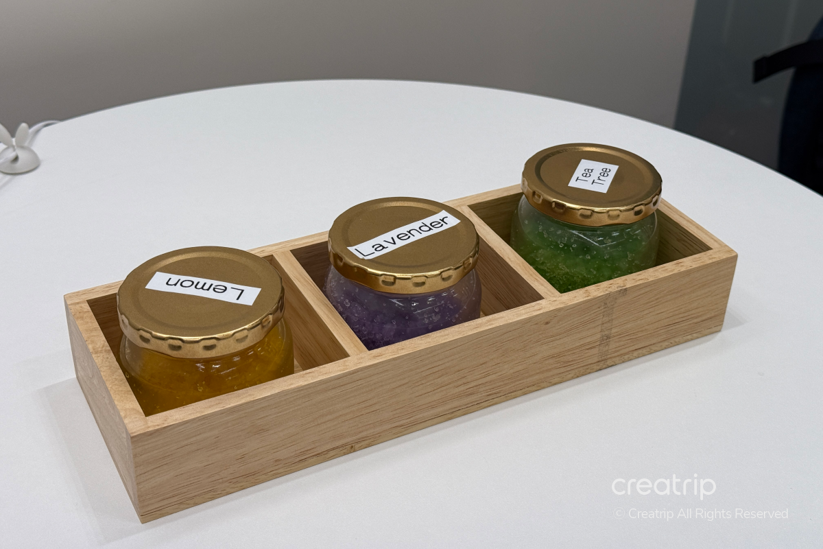 Tambahan mandi dibagi menjadi lavender, lemon, dan tea tree, jadi Anda bisa mencium aromanya dan memilih jenis yang diinginkan.