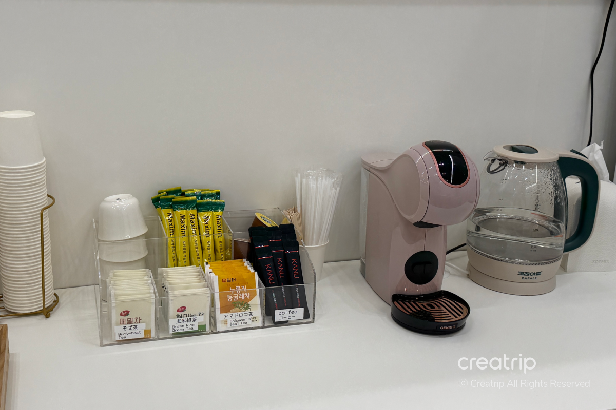 Ada juga kopi dan kantong teh yang bisa digunakan gratis.