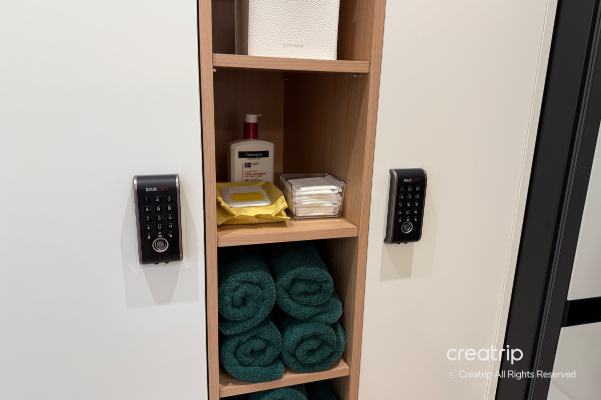 Anda menyimpan pakaian di loker pribadi dan mengatur kode sandi, jadi Anda bisa merasa aman soal keamanan.
