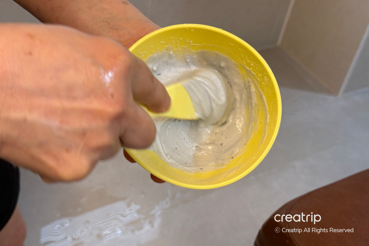 Selanjutnya mereka mengaplikasikan masker modelling, dan saat masker menyentuh Anda langsung terasa sensasi dingin, yang membuat saya sangat puas karena terasa seperti tubuh dan wajah dirawat bersama-sama.