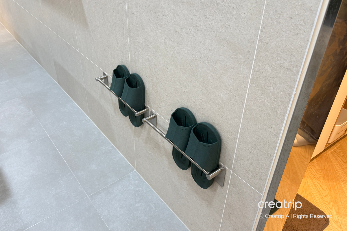 Di pintu masuk, lepaskan sepatu Anda dan ganti dengan sandal dalam ruangan sebelum masuk.