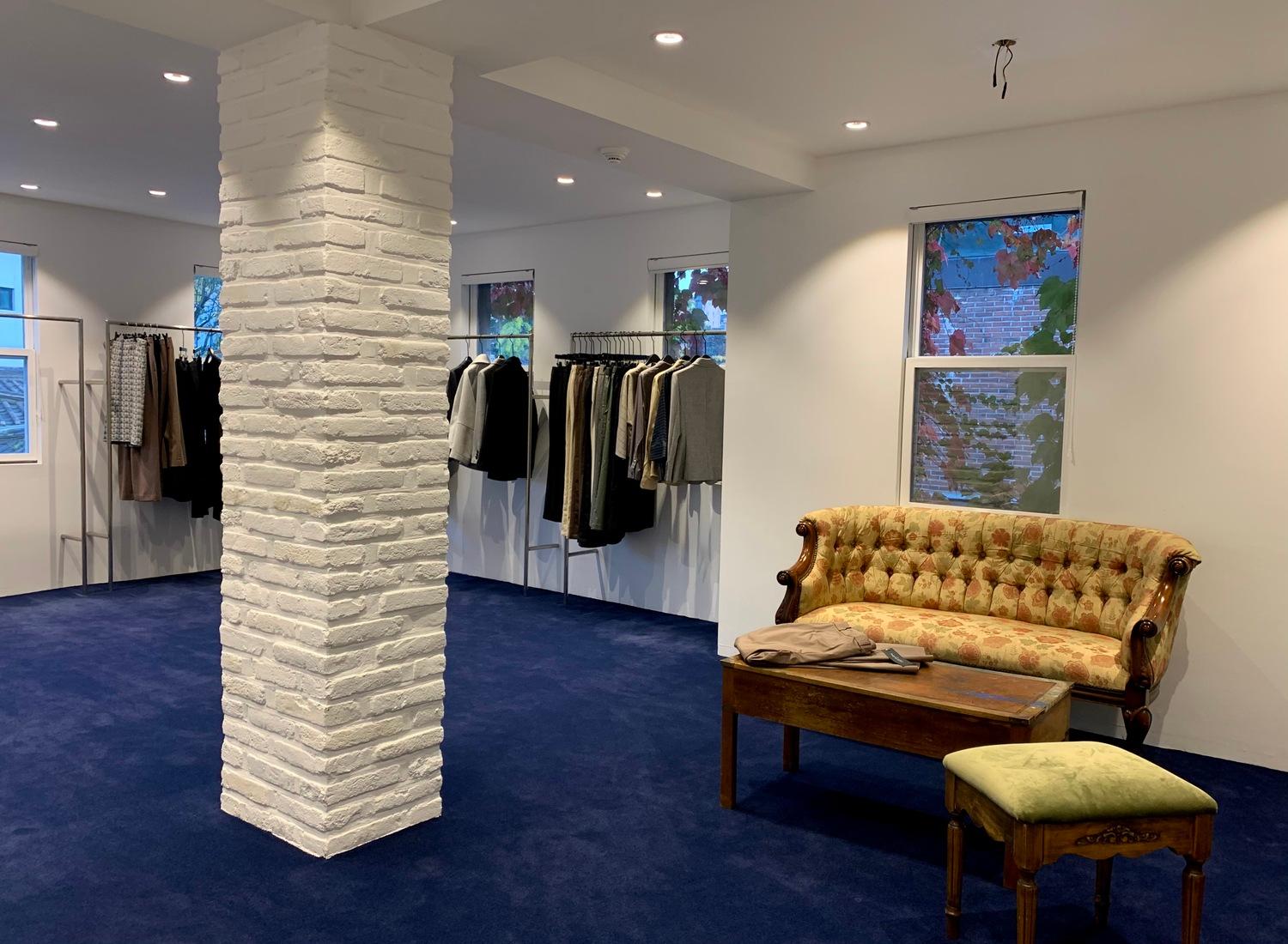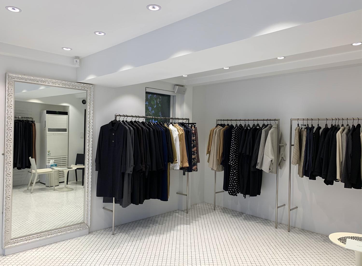 Lantai pertama secara keseluruhan memiliki tema putih yang bersih, yang menonjolkan warna pakaian dengan baik.
