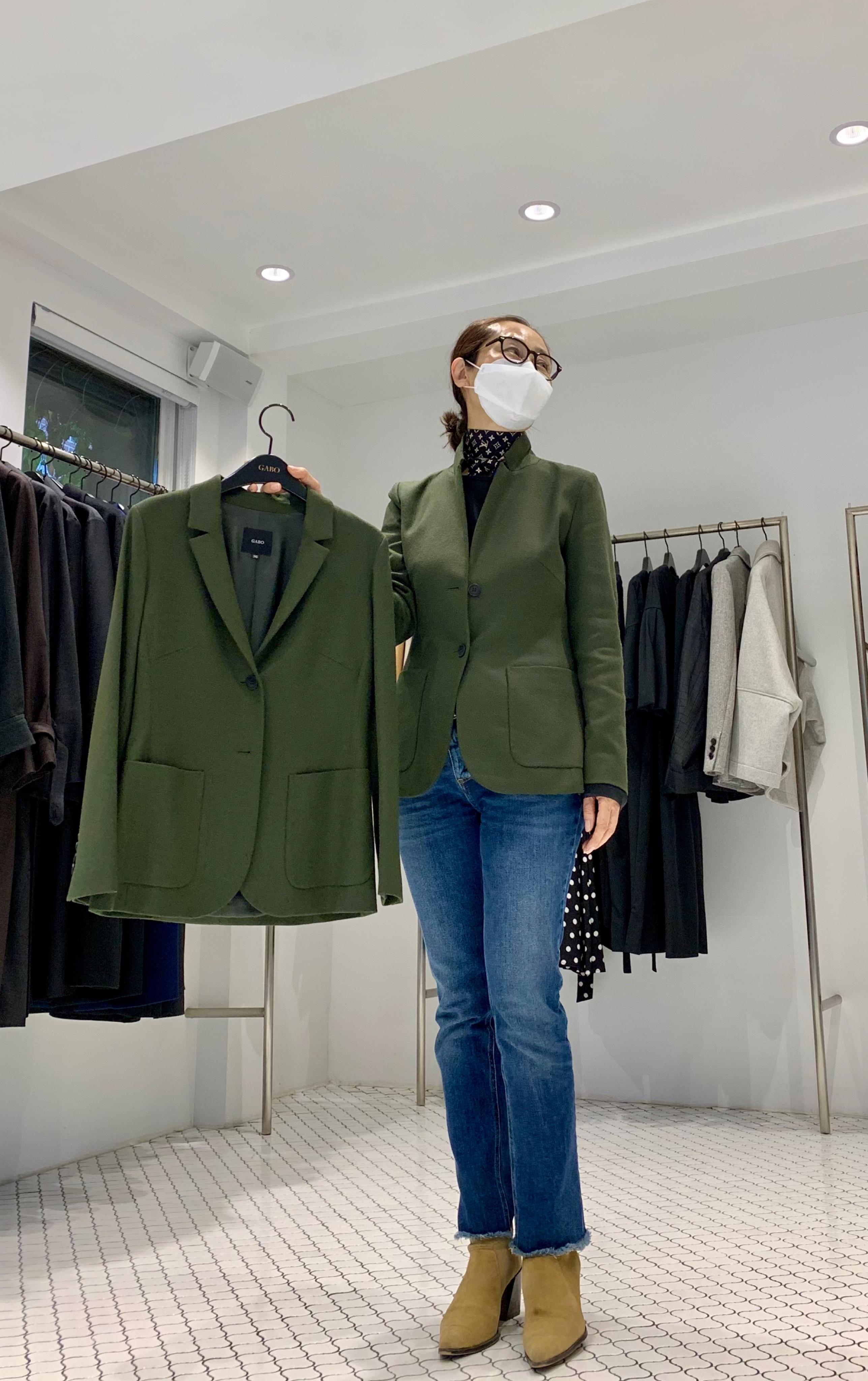 Desainer utama sedang mengenakan salah satu jaket hijau dari GABO! Seperti yang disebutkan di atas, filosofinya adalah merancang potongan-potongan yang bisa ia kenakan sendiri.