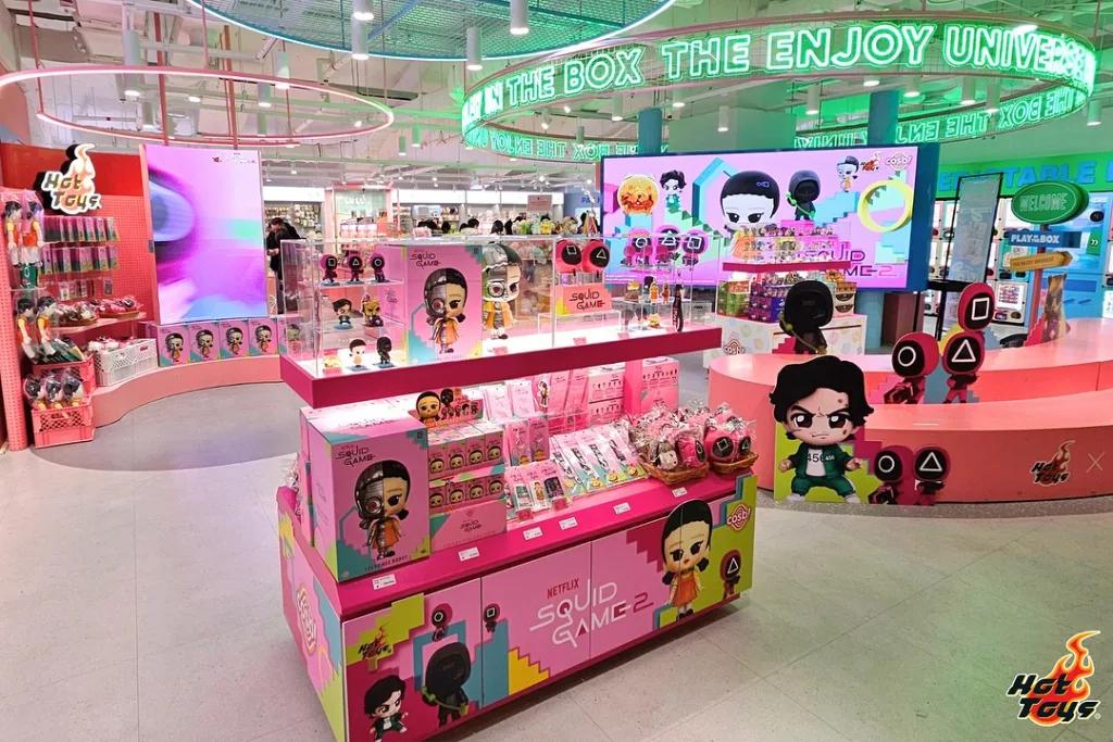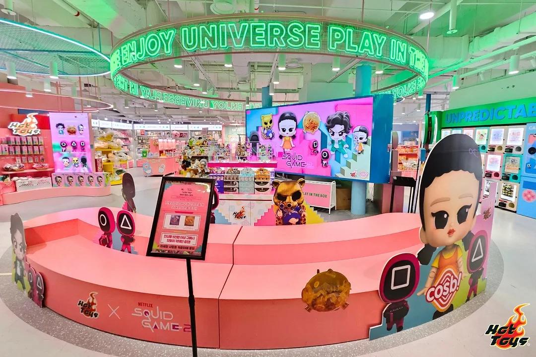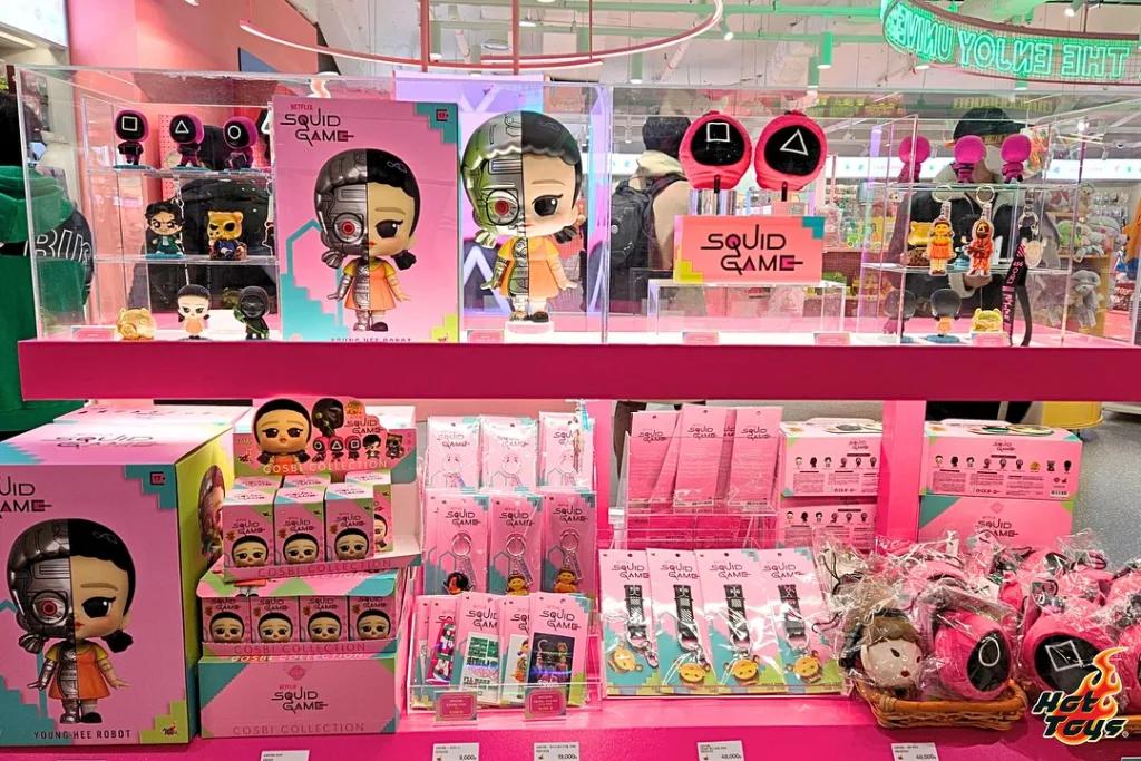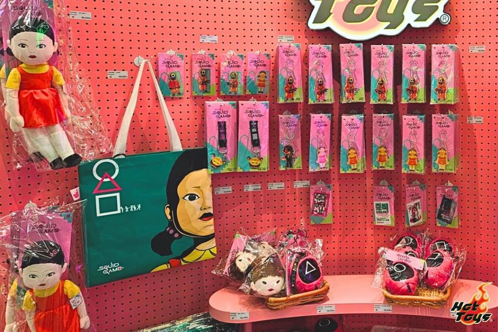 Ada berbagai produk yang tersedia, termasuk figur karakter dari Squid Game, gantungan kunci, mainan boneka Younghee, dan tas kanvas nomor 456, yang telah mendapatkan popularitas di seluruh dunia. Zona foto khusus bertema Squid Game juga disiapkan, jadi jika Anda tertarik, pastikan untuk berkunjung!