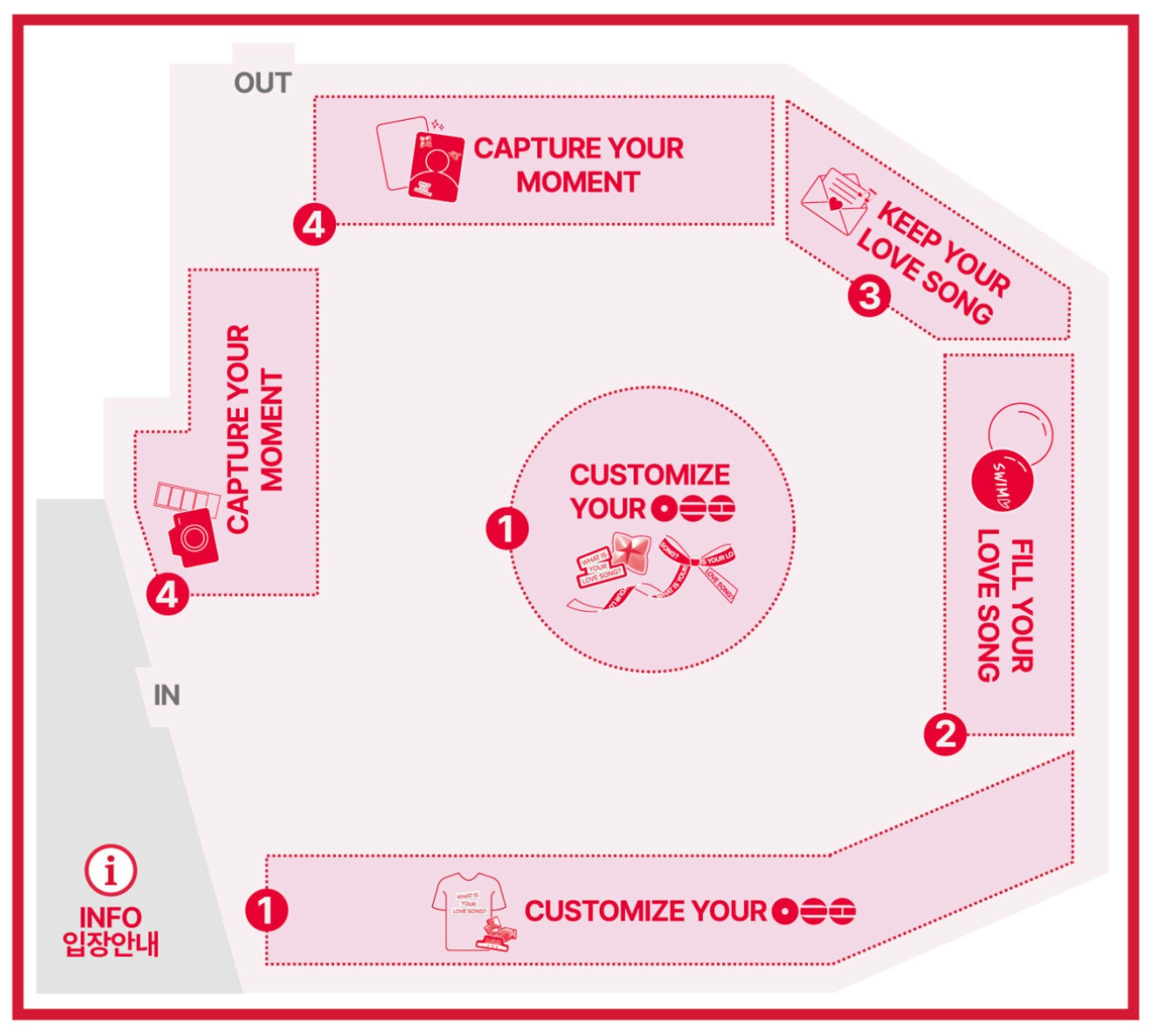 Pengumuman acara pengalaman singkat yang diselenggarakan di salah satu sudut DDP Exhibition Hall. Program ini berlangsung selama satu minggu pada pekan pertama April, terdiri dari beberapa booth interaktif termasuk Zona Kustomisasi di mana pengunjung dapat menyesuaikan T-shirt dan penlight dengan gaya mereka sendiri, serta sudut partisipatif untuk menyelesaikan logo besar bersama-sama. Lokasi di Exhibition Hall 1, dan tanggal pelaksanaan 6 April 2026 hingga 12 April 2026. Jika ingin berpartisipasi, dapat mendaftar melalui reservasi sebelumnya atau pendaftaran langsung di lokasi pada hari acara; reservasi sebelumnya diterima melalui platform yang ditentukan. Ini kesempatan singkat untuk menikmati berbagai sensasi, jadi jika berminat, silakan lakukan reservasi lebih awal.