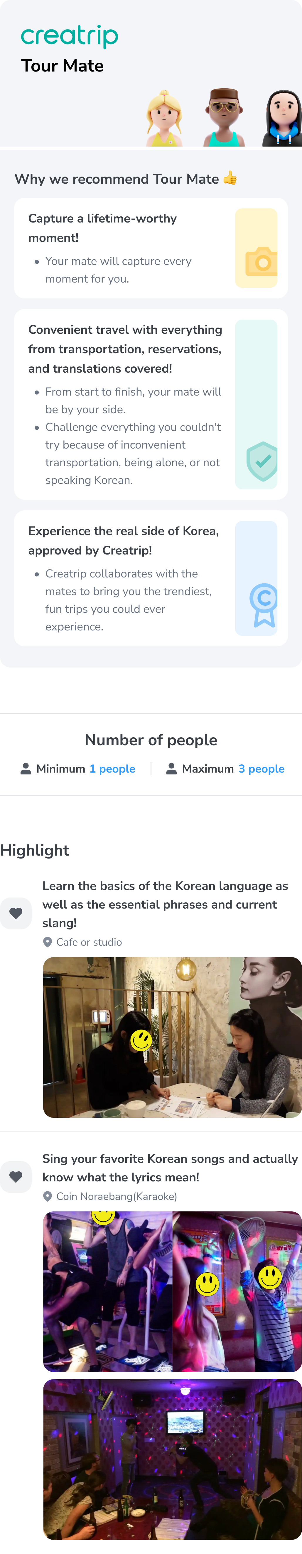 - Mari minum minuman dan menyanyikan berbagai lagu K-POP bersama di karaoke koin.Keterampilan bernyanyi Tourmate sangat sangat luar biasa!