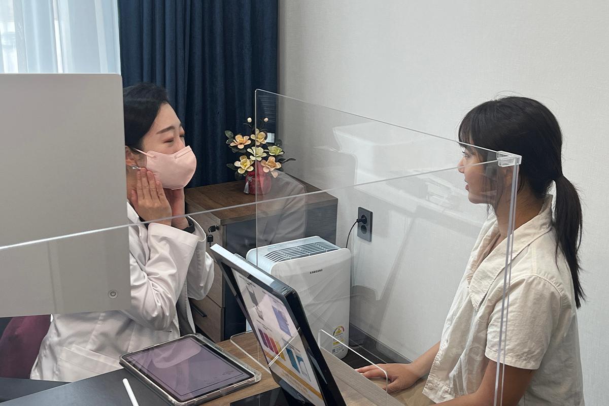 Oggi, abbiamo visitato Cheongdam Eclat De per ricevere trattamenti di bellezza. All'arrivo, sono stata guidata nella sala di consultazione per discutere e determinare quale procedura avrei dovuto subire.