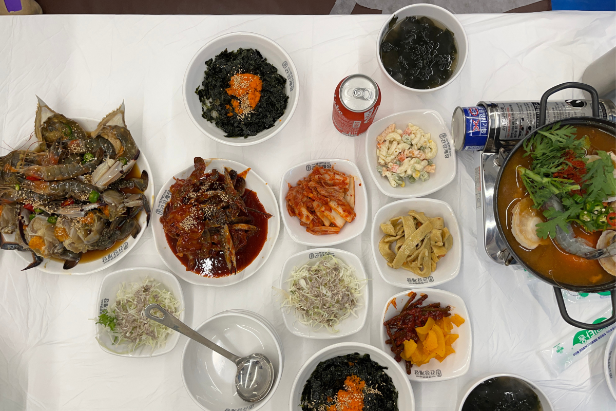 Mentre stavamo prendendo gli antipasti, il nostro tavolo è stato apparecchiato. Siamo rimasti SORPRESI nel vedere la quantità di cibo sul tavolo e felici di non aver scelto l'opzione illimitata. Ci si può stancare di mangiare granchio marinato crudo ripetutamente, quindi consigliamo anche di optare per il Granchio Femmina.