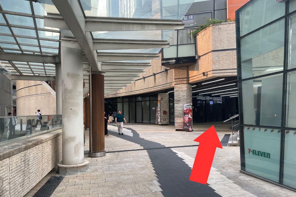 Passare il 7/11 e camminare nel corridoio sulla destra (fare riferimento all'immagine sopra).