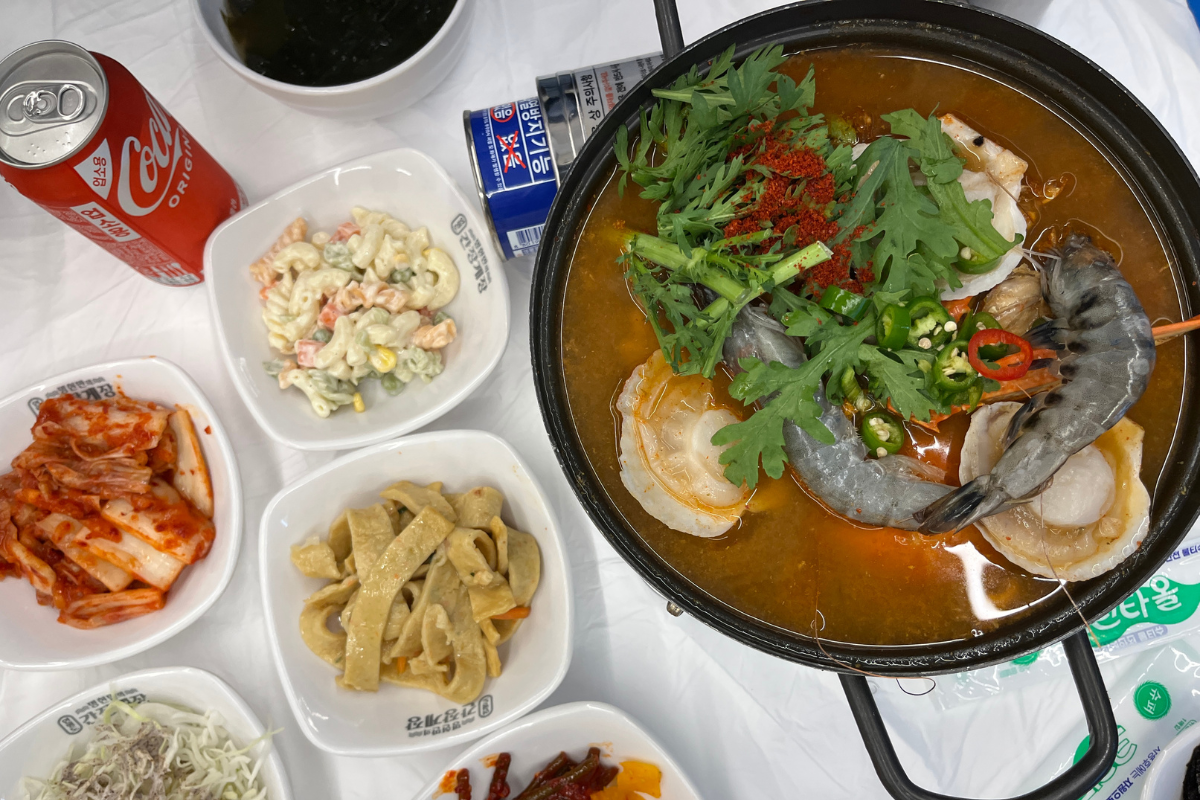 Il proprietario ci ha anche spinto a prendere lo stufato di granchio, che costava 11.900 KRW e siamo stati contenti di averlo preso perché il brodo era incredibile. Il bar self-service aveva pacchetti di ramen da mettere nella tua zuppa.