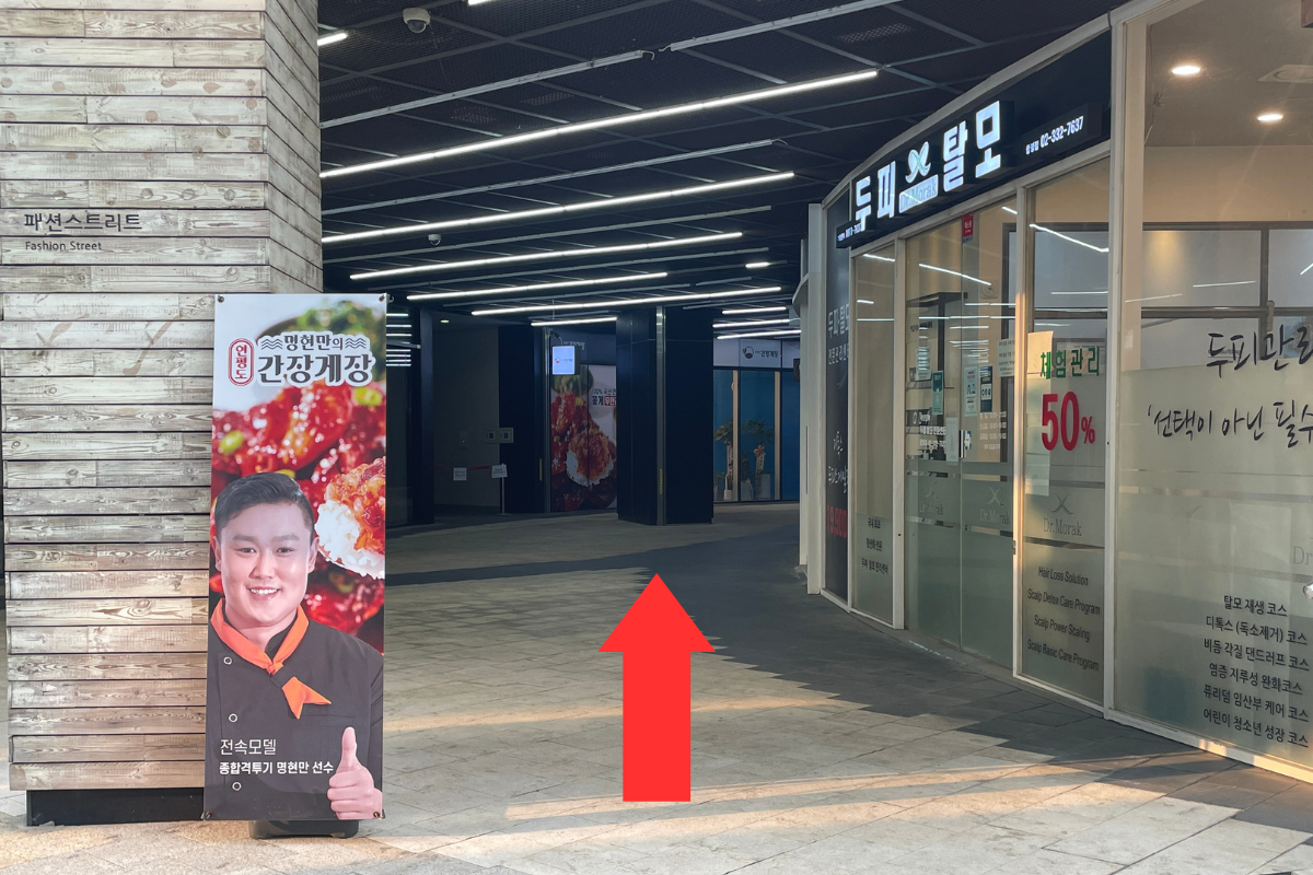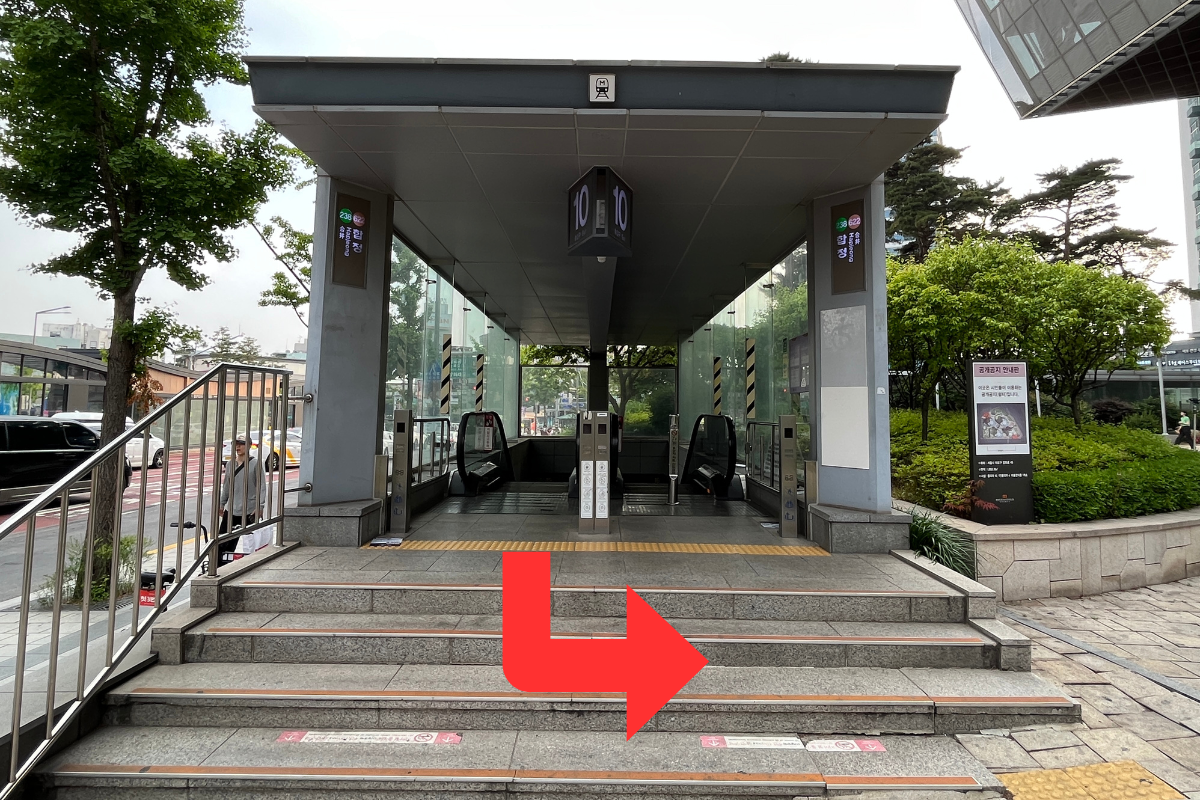 Uscita dalla Stazione di Hapjeong Uscita 10 e gira a sinistra.