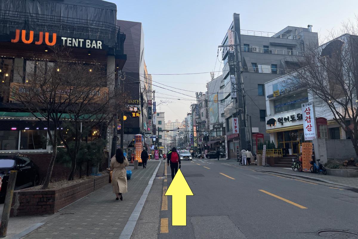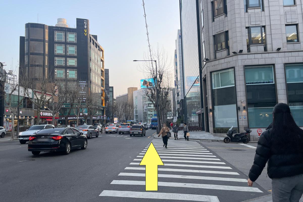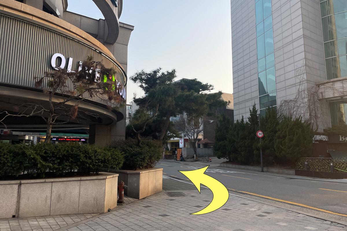 Gira a sinistra all'edificio Olive Young e entra nel vicolo.