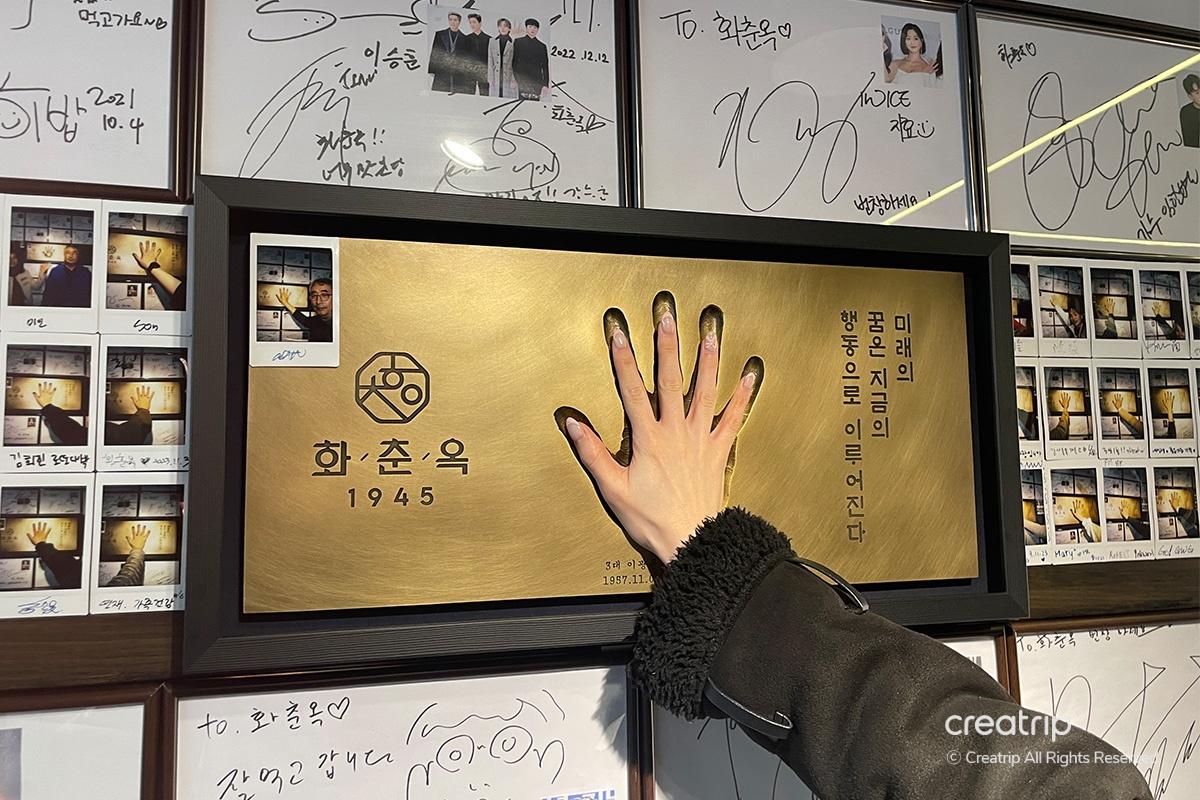 Appena entri, puoi vedere molte firme come Twice Jihyo, EXO e altre celebrità famose. Hanno anche un piatto famoso per portare energia positiva quando lo tocchi. In realtà, c'è un caso di un ospite che ha visitato il Branch di Hwachunok Cheongdam e ha toccato il piatto, vincendo il primo premio nella lotteria!