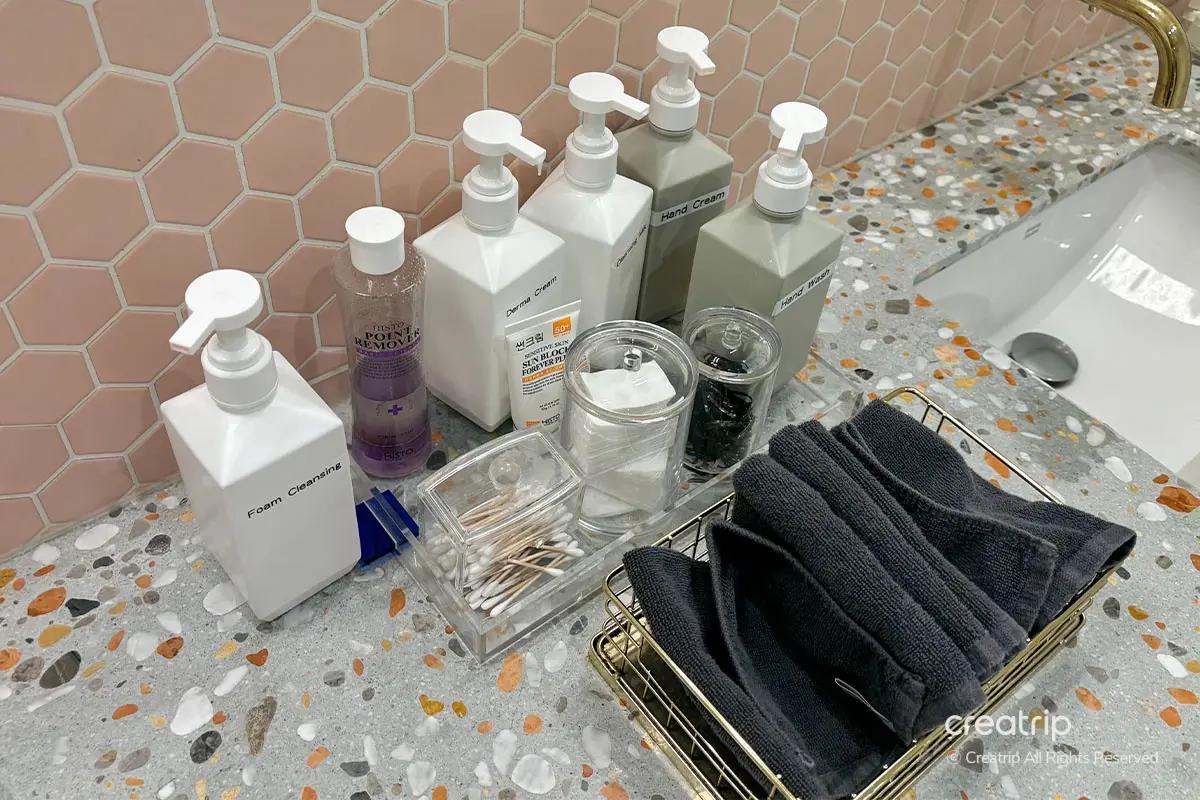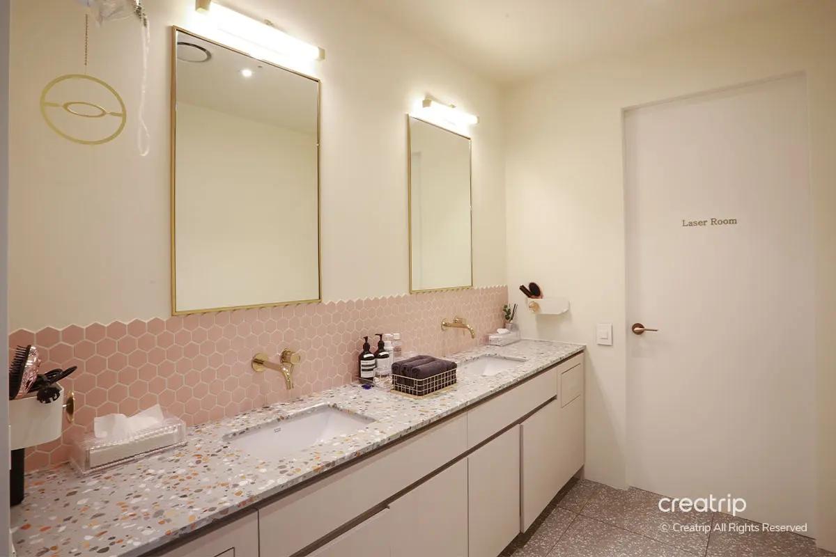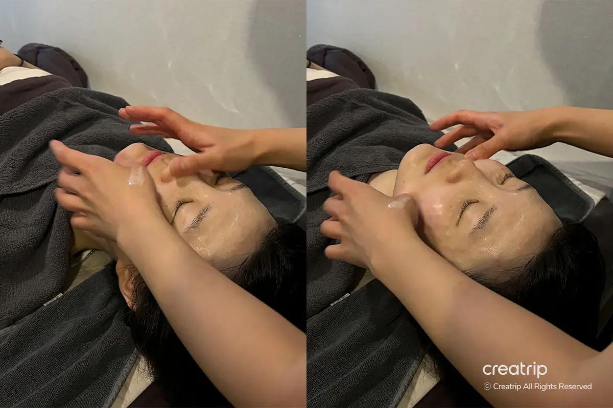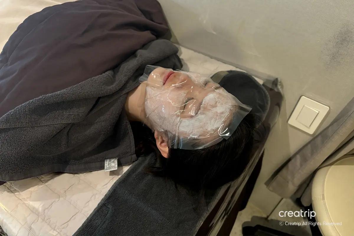 La visita è iniziata con il check-in alla reception usando il passaporto per la conferma della prenotazione, seguito da una detersione approfondita in un'area di preparazione dedicata fornita di prodotti professionali, inclusi struccante per labbra/occhi e detergenti schiumogeni. Sono inoltre disponibili servizi post-trattamento come pettini e una piastra Dyson.