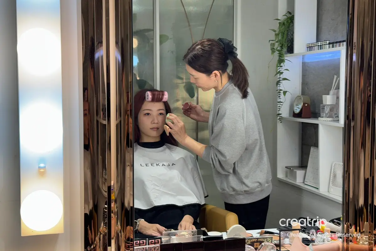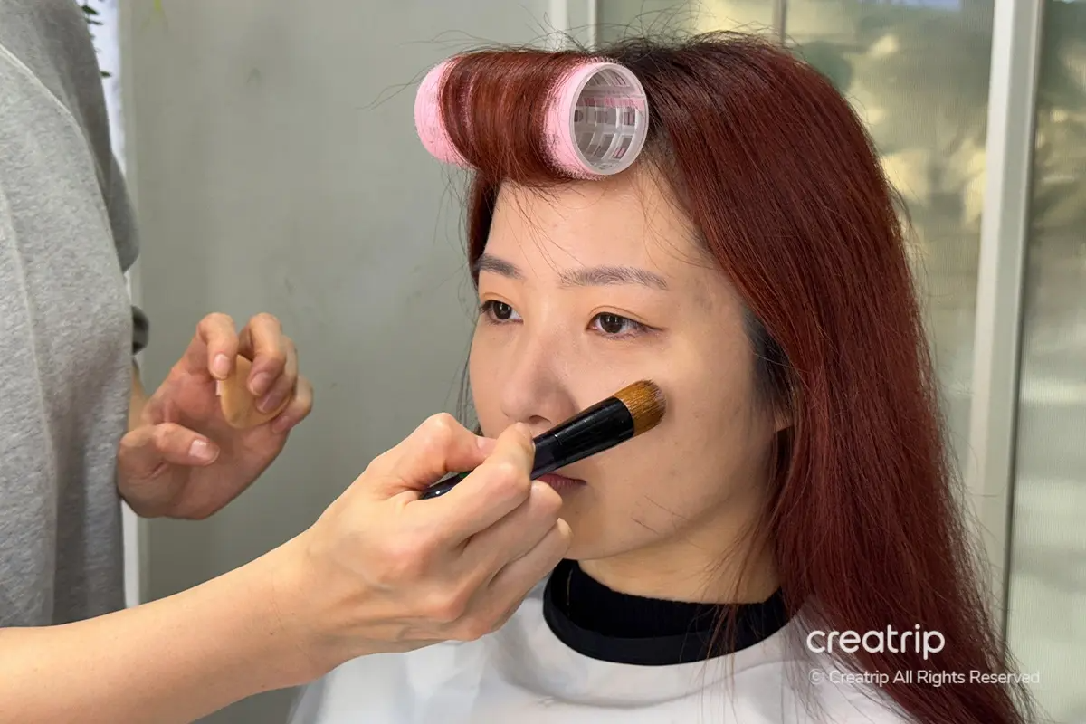 Il mio amico che è venuto con me ha optato per una sessione di 'trucco quotidiano veloce'. Raffinando il trucco esistente e correggendo eventuali imperfezioni, l'aspetto complessivo è stato rapidamente elevato.