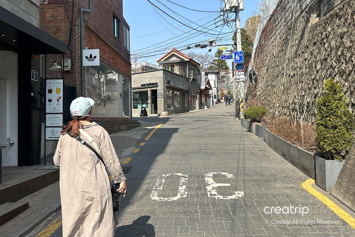 Non era faticoso perché potevamo guardare intorno a Bukchon e scattare foto qua e là, e sembrava una passeggiata con amici che scattavano foto.