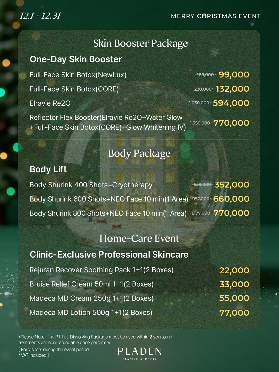 Skin Boosters (Rejuran, Elravie Re2O, Lizne, Juvelook, Exosome, Water Glow Injection, Melasma Injection, Skin Botox, etc.) | |