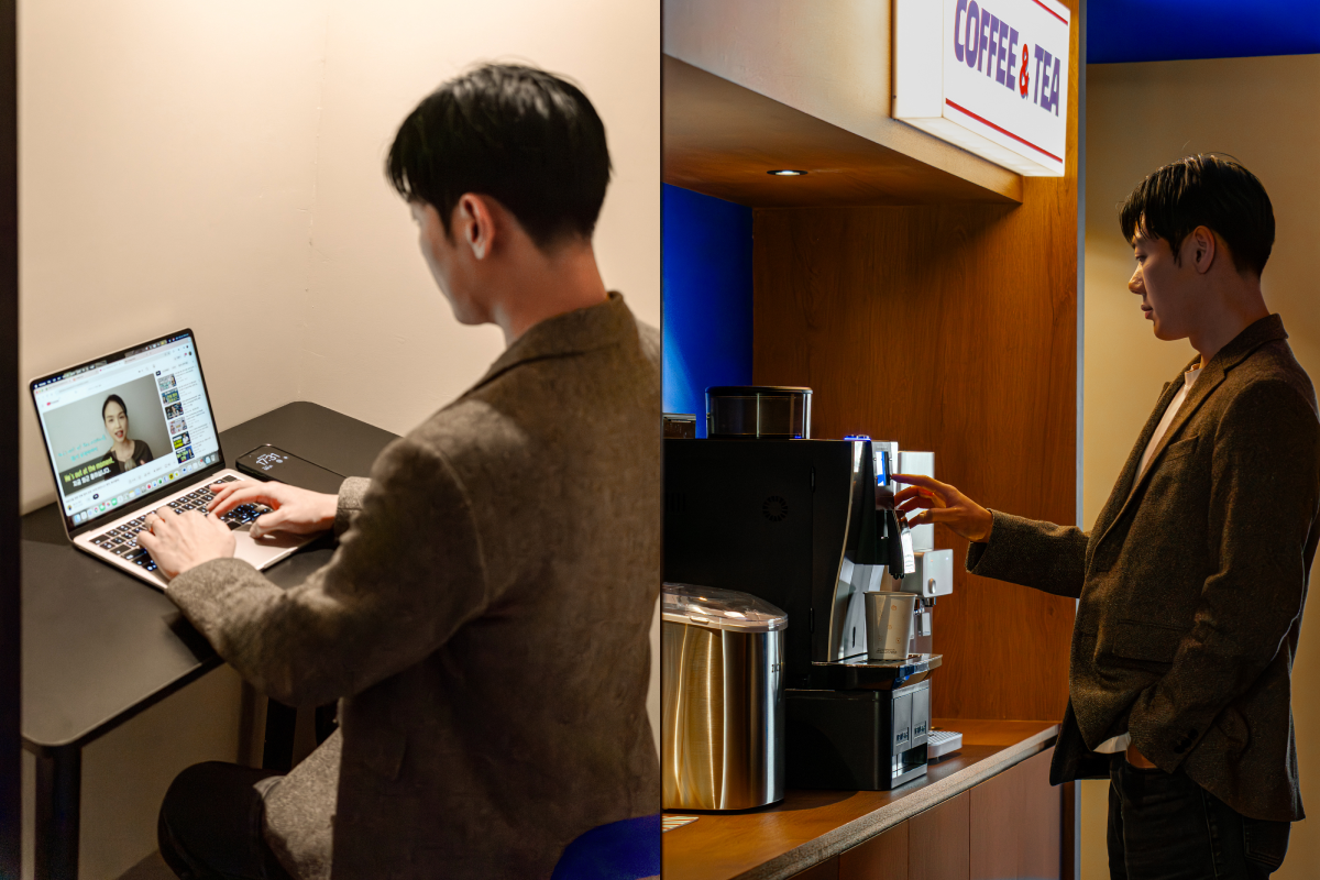 - Nell’Open Work Lounge puoi concentrarti sul lavoro in un ambiente aperto e arioso mentre guardi la vista cittadina della Stazione di Seul. L’atmosfera tranquilla è adatta a compiti che richiedono concentrazione, e le videochiamate o il lavoro telefonico possono svolgersi senza essere disturbati dai rumori esterni.