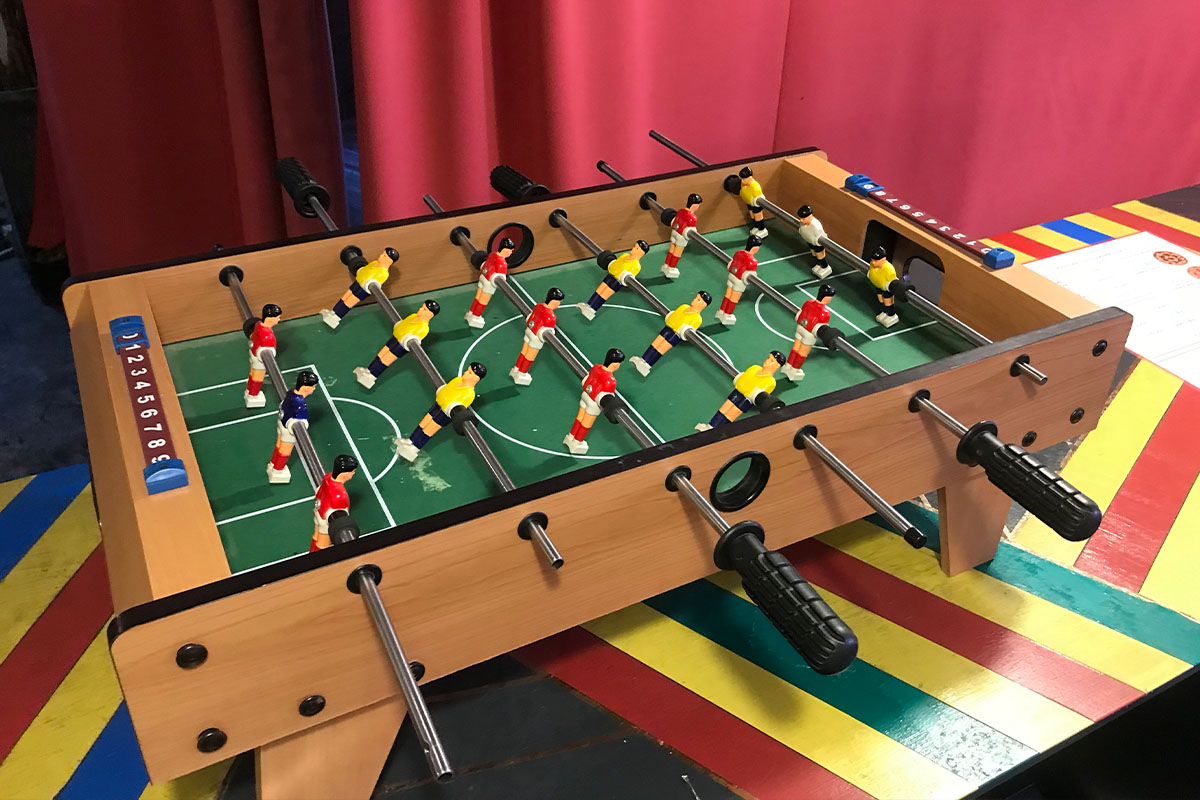 サッカーゲーム機も置いてあり、食事を待っている間に遊ぶことができます。