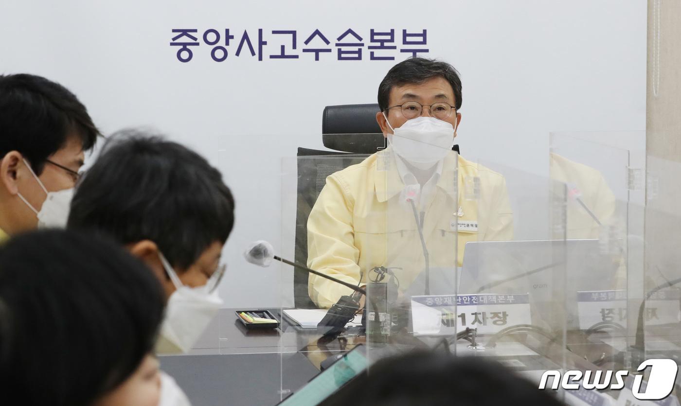 (ソウル=News1)イ·ヒョンジン記者 = クォン·ドクチョル中央災難安全対策本部1次長(保健福祉部長官)が18日、社会的距離置きの調整と関連し、「月曜日(21日)からは私的な集まりの制限を6人から8人に調整する」と明らかにした。