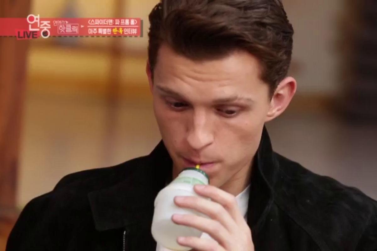 KBS2《芸能街中継》で映画『スパイダーマン』の宣伝のために来韓したトム·ホランドが「このバナナ牛乳、本当に美味しいですね」とコメントしながらあっという間に飲み干し、2本目のバナナウユを嬉しそうに貰っていきました